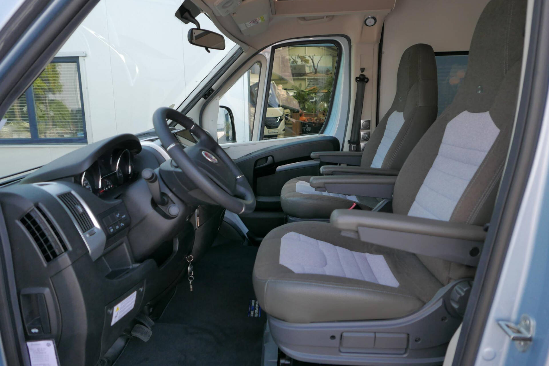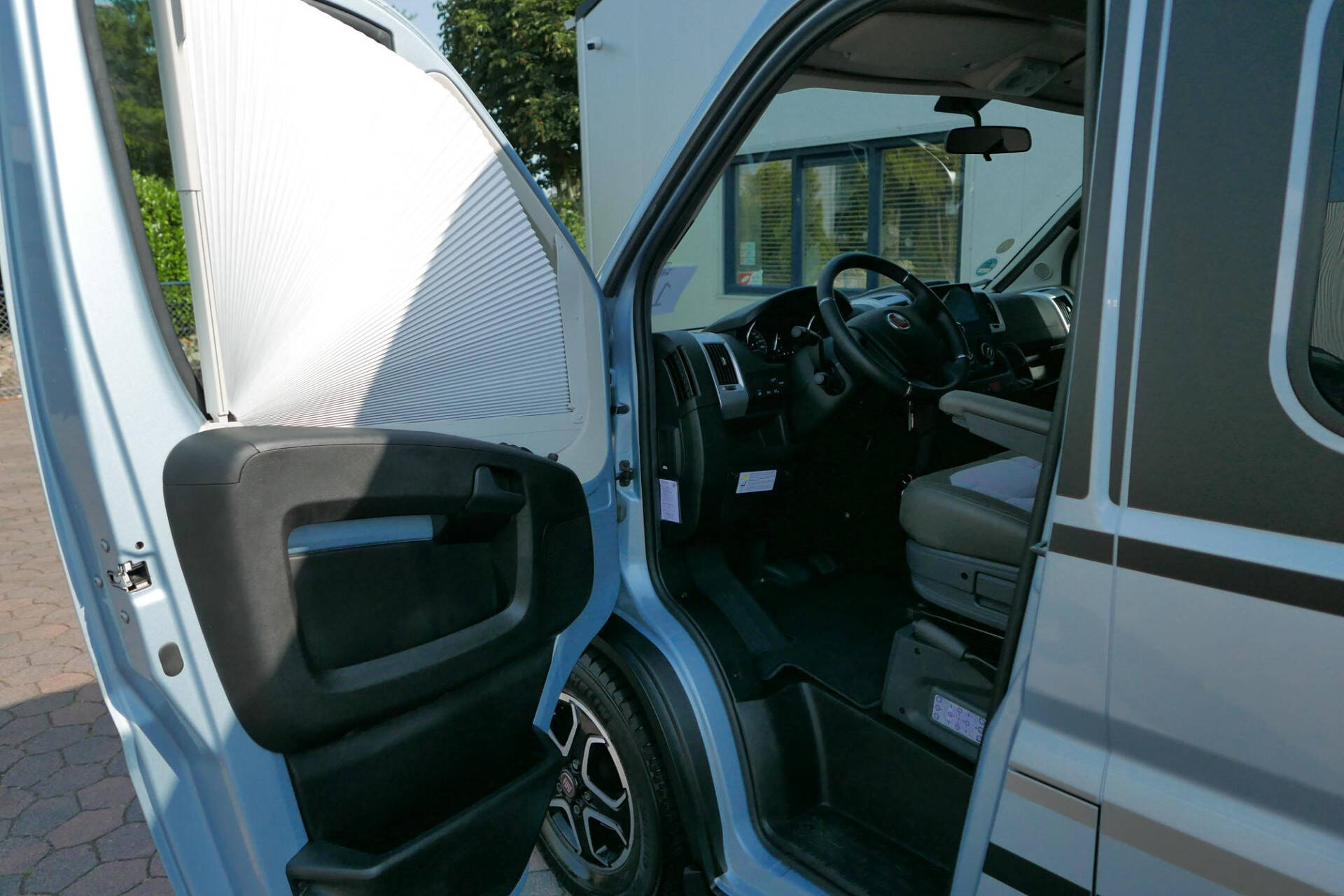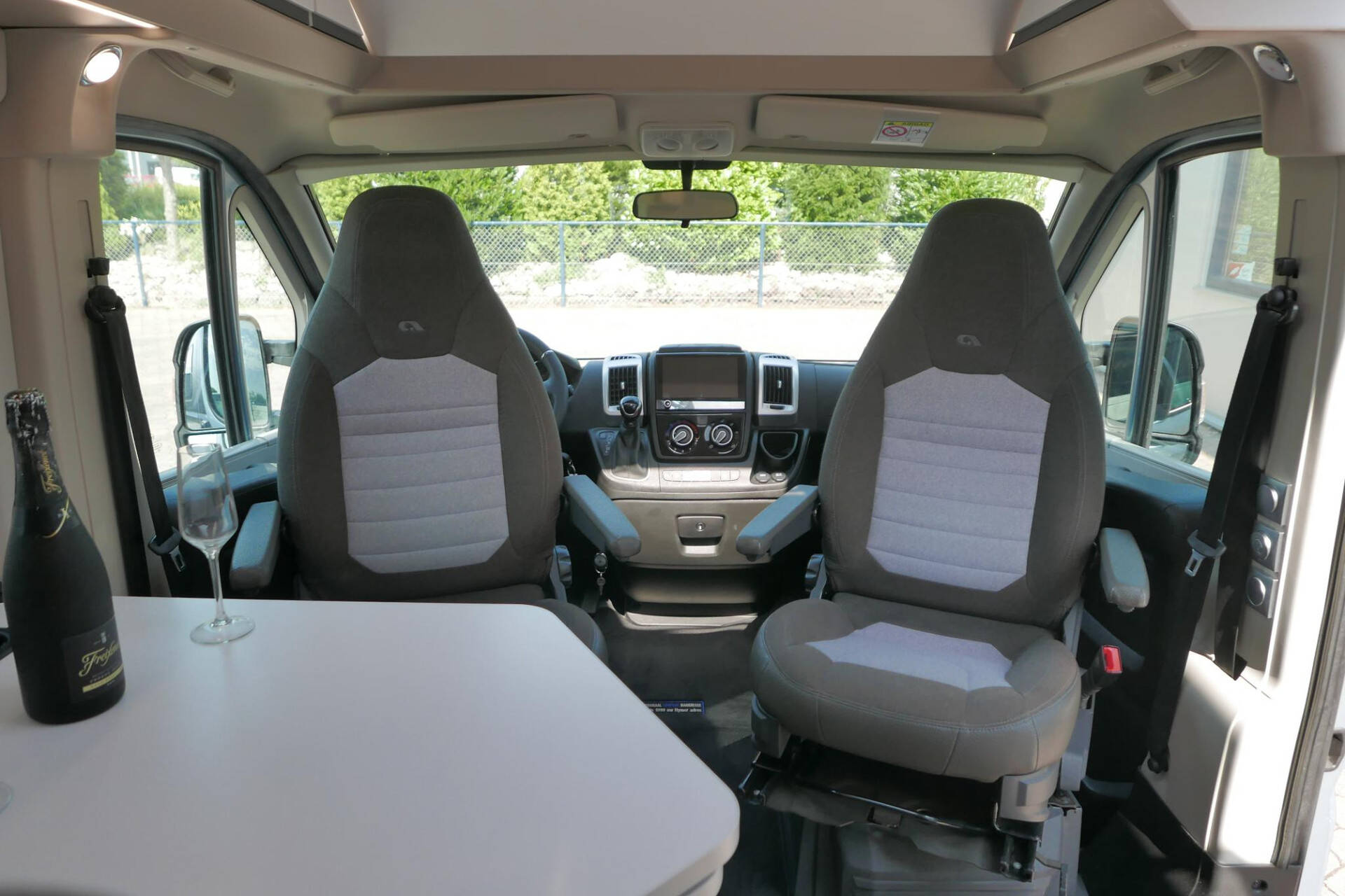 In de cabine van deze buscamper ervaart u de luxe op weg naar het avontuur. Makkelijk in- en uitstappen kan via zowel de bestuurders- als de passagiersdeur. De cockpit is voorzien van het moderne multimediasysteem. Op het 8 inch scherm kunt u onder andere de navigatie, de achteruitrijcamera en de DAB+ radio bedienen. De 2 comfortabele pilotenstoelen zijn volledig verstelbaar en draaibaar.