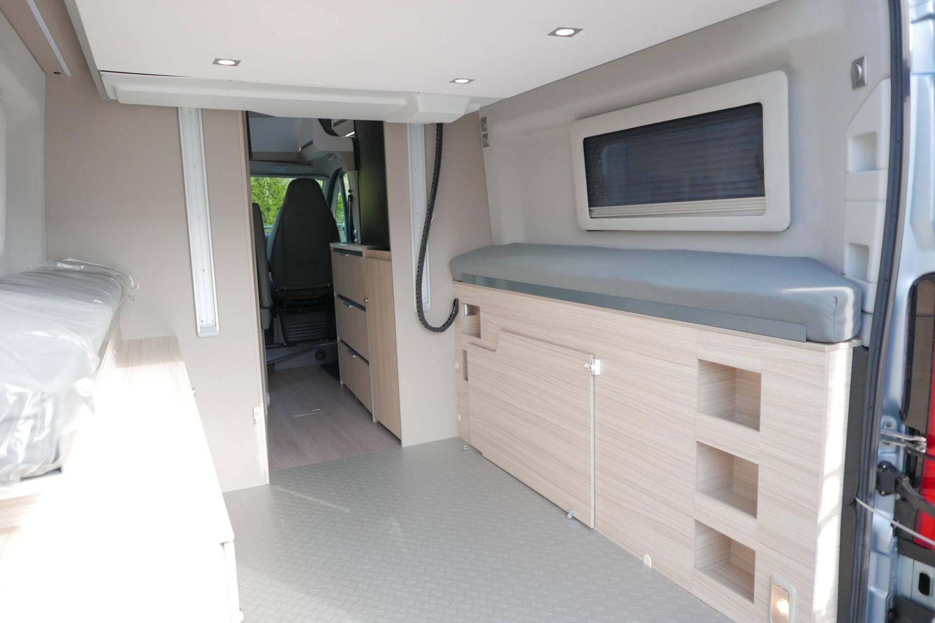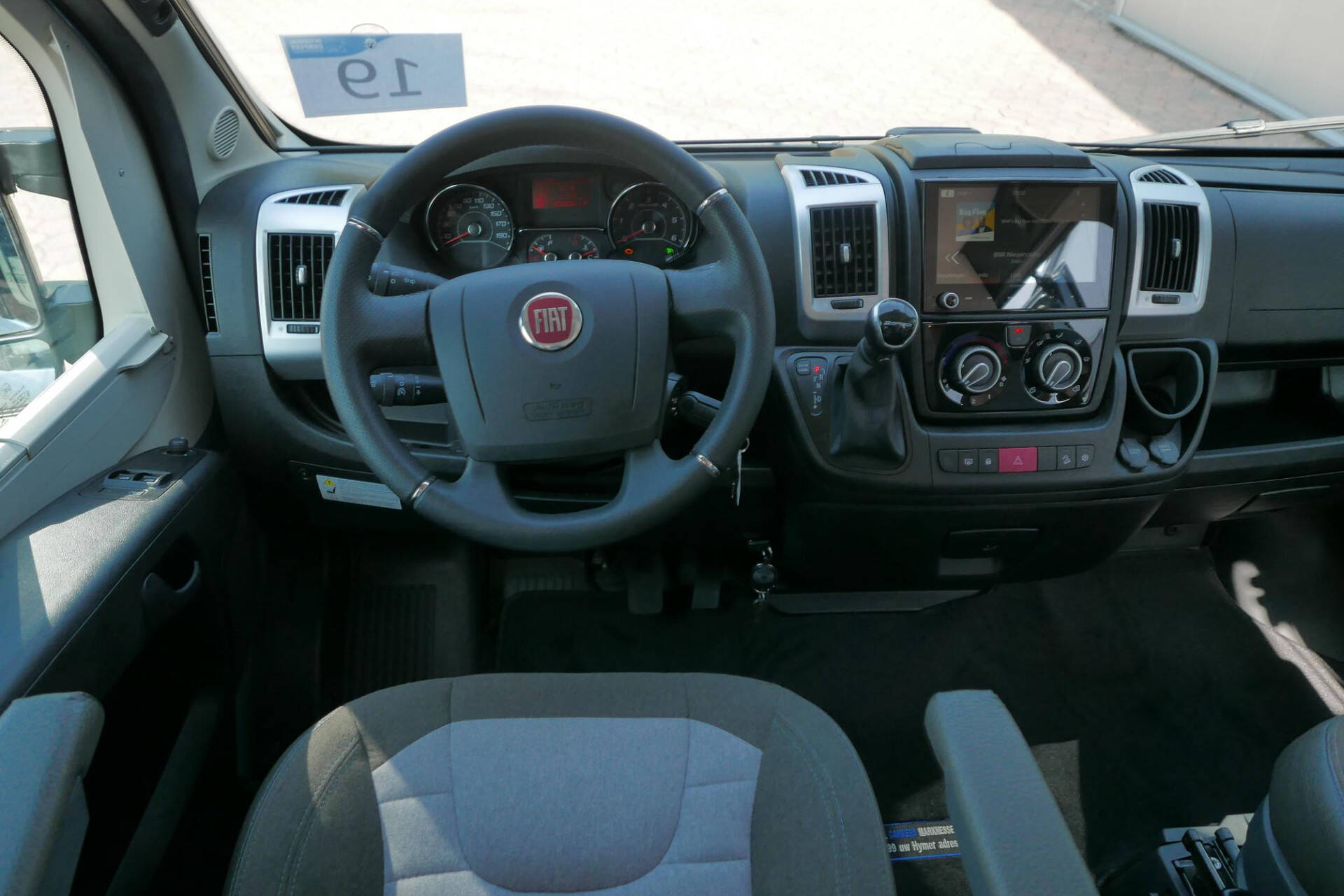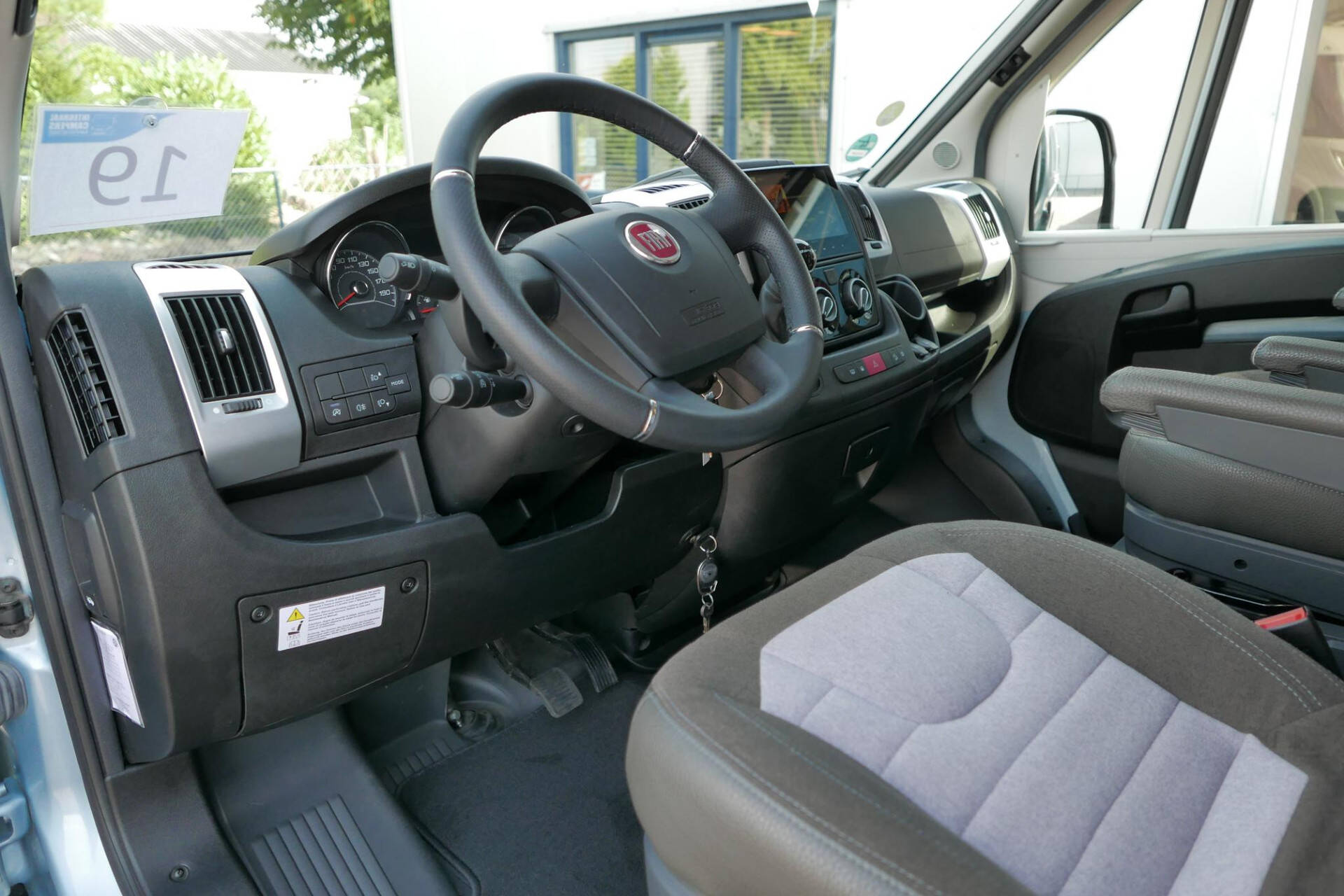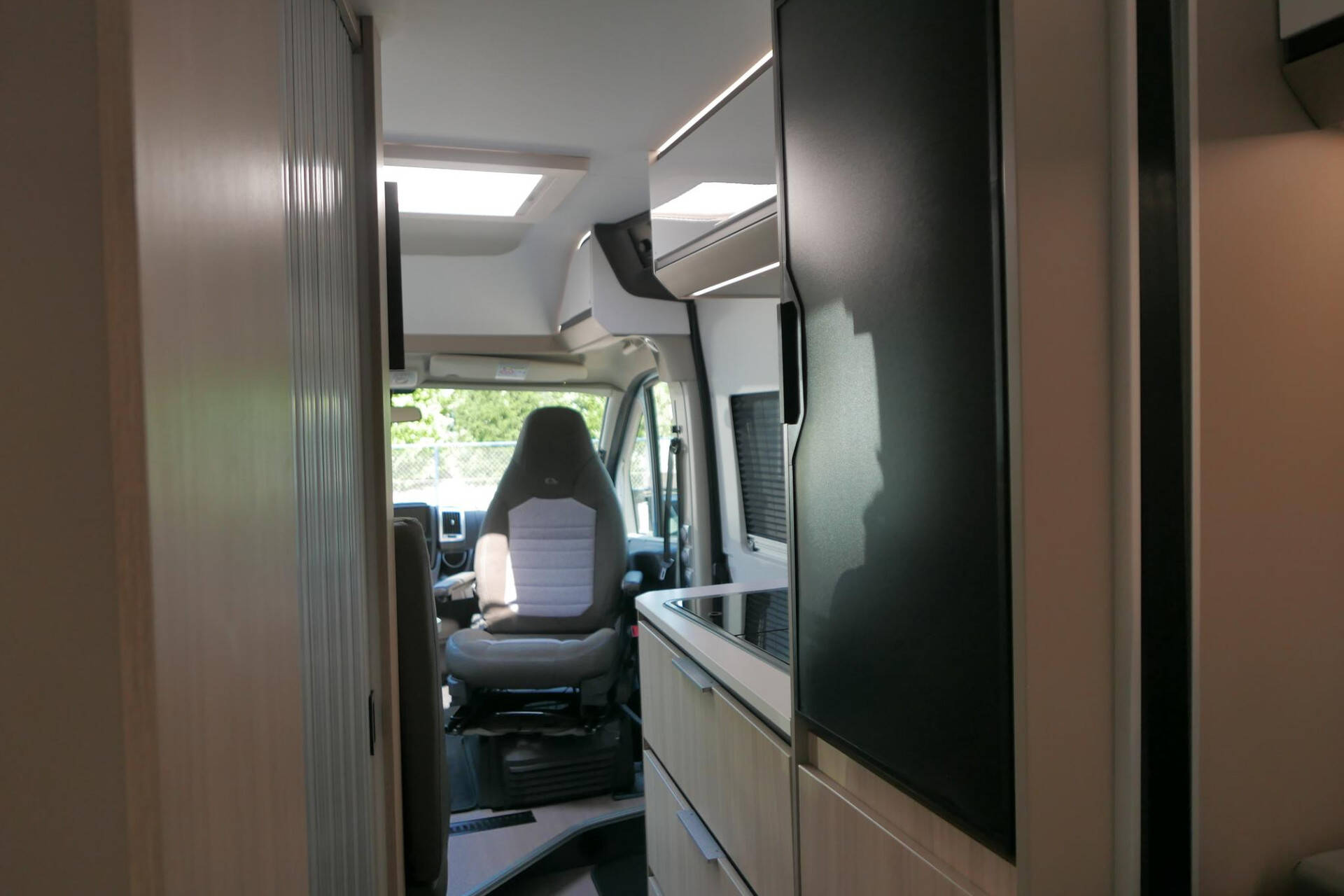 In de cabine van deze buscamper ervaart u de luxe op weg naar het avontuur. Makkelijk in- en uitstappen kan via zowel de bestuurders- als de passagiersdeur. De cockpit is voorzien van het moderne multimediasysteem. Op het 8 inch scherm kunt u onder andere de navigatie, de achteruitrijcamera en de DAB+ radio bedienen. De 2 comfortabele pilotenstoelen zijn volledig verstelbaar en draaibaar.