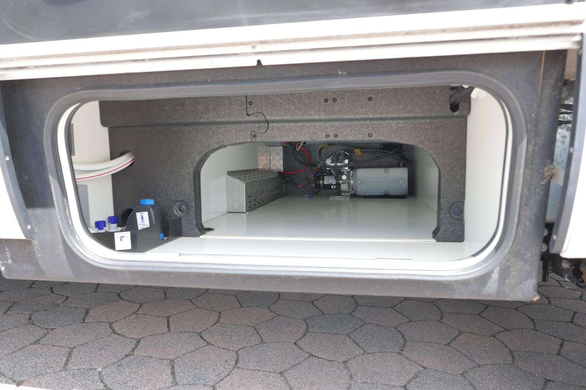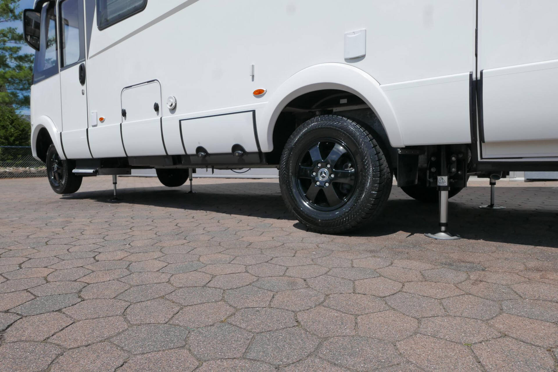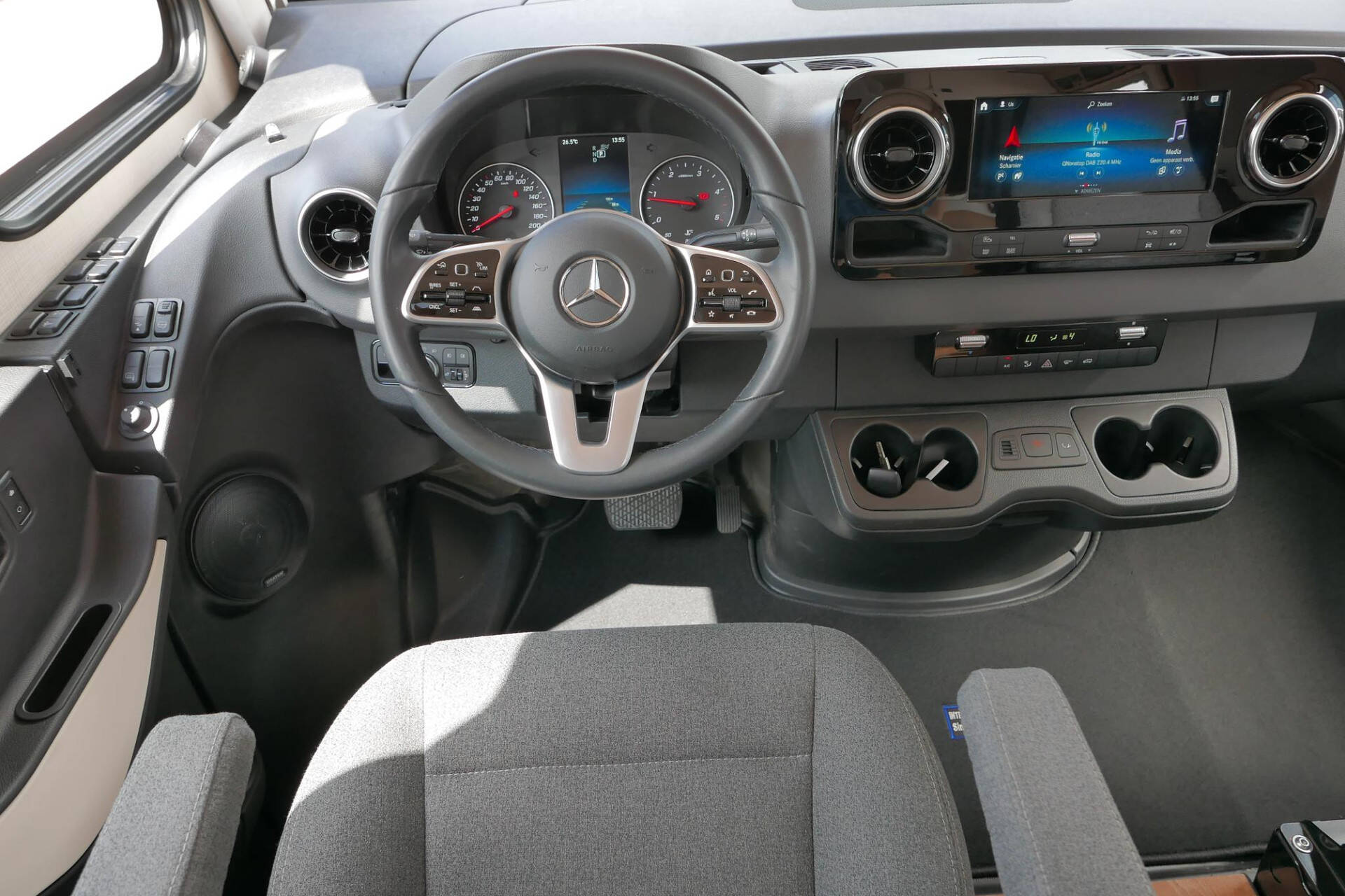 In de cabine van deze integraal camper valt meteen het geweldige panorama uitzicht op. Niet alleen om volop te genieten van de omgeving om u heen, maar ook voor een goed overzicht op het verkeer tijdens het rijden. De cockpit is voorzien van het luxe Mercedes-Benz MBUX multimediasysteem met 10,25 inch scherm voor onder andere navigatie, achteruitrijcamera en media. De 2 comfortabele Aguti ergoflex stoelen zijn volledig verstelbaar en draaibaar. Verder beschikt deze Hymer over: