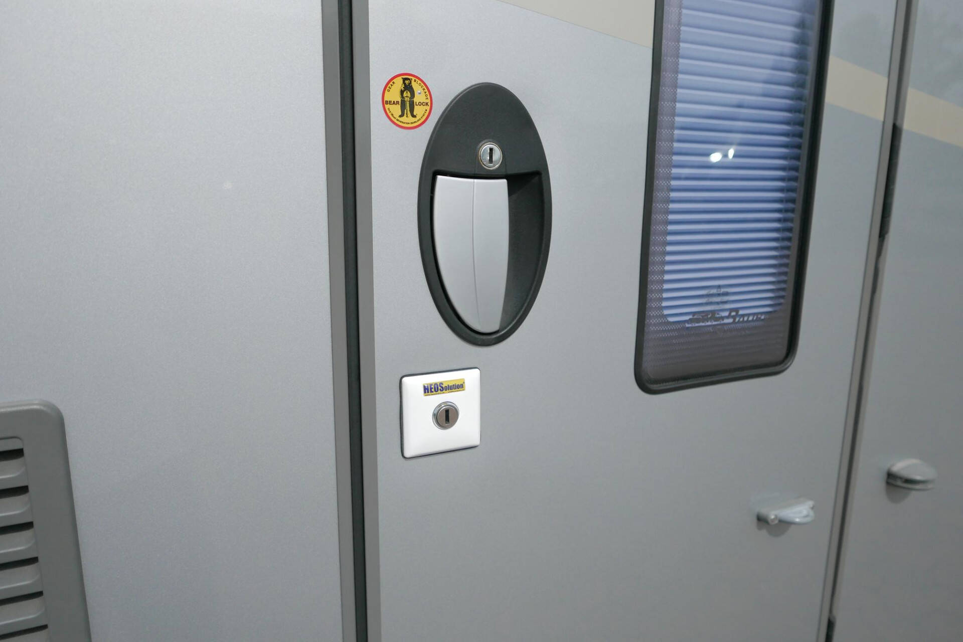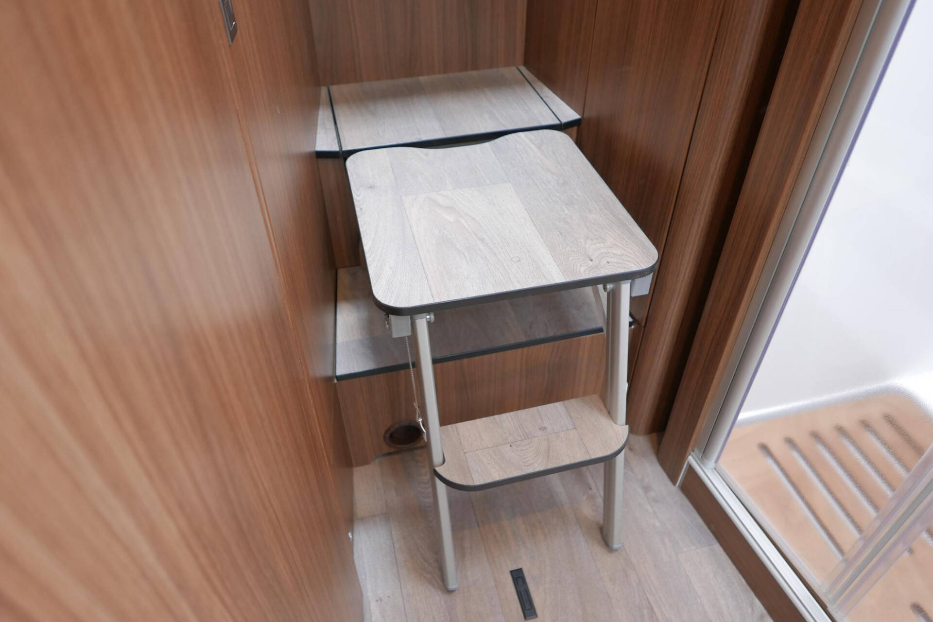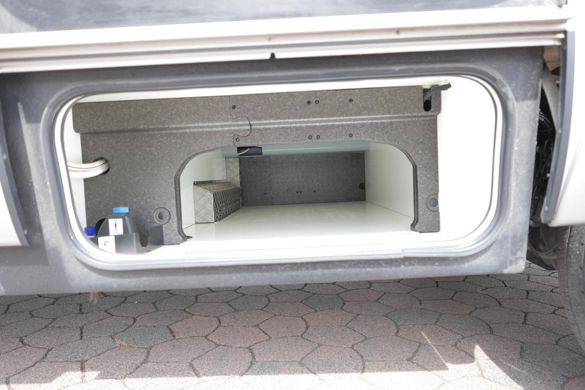 Door de voorstoelen te draaien ontstaat een ruime en gezellige zithoek met L-zit. Het Grand Oak meubeldecor in combinatie met de lederen Dalana bekleding geven de woonruimte een moderne uitstraling. Door het AL-KO maxi chassis beschikt deze camper over een volledig vlakke vloer met in de mee verwarmde dubbele bodem extra opbergruimte die ook vanaf de buitenkant te bereiken is. De 180 liter schoon- en 150 liter vuilwatertank zijn tevens in de dubbele bodem gesitueerd. Uiteraard zijn alle ramen en deuren voorzien van horren en plisséverduistering.