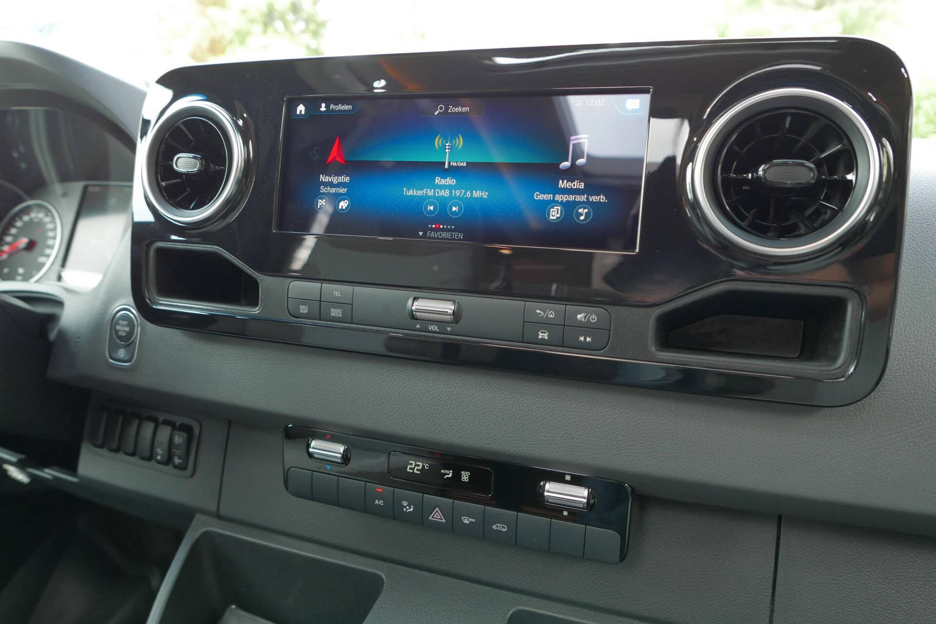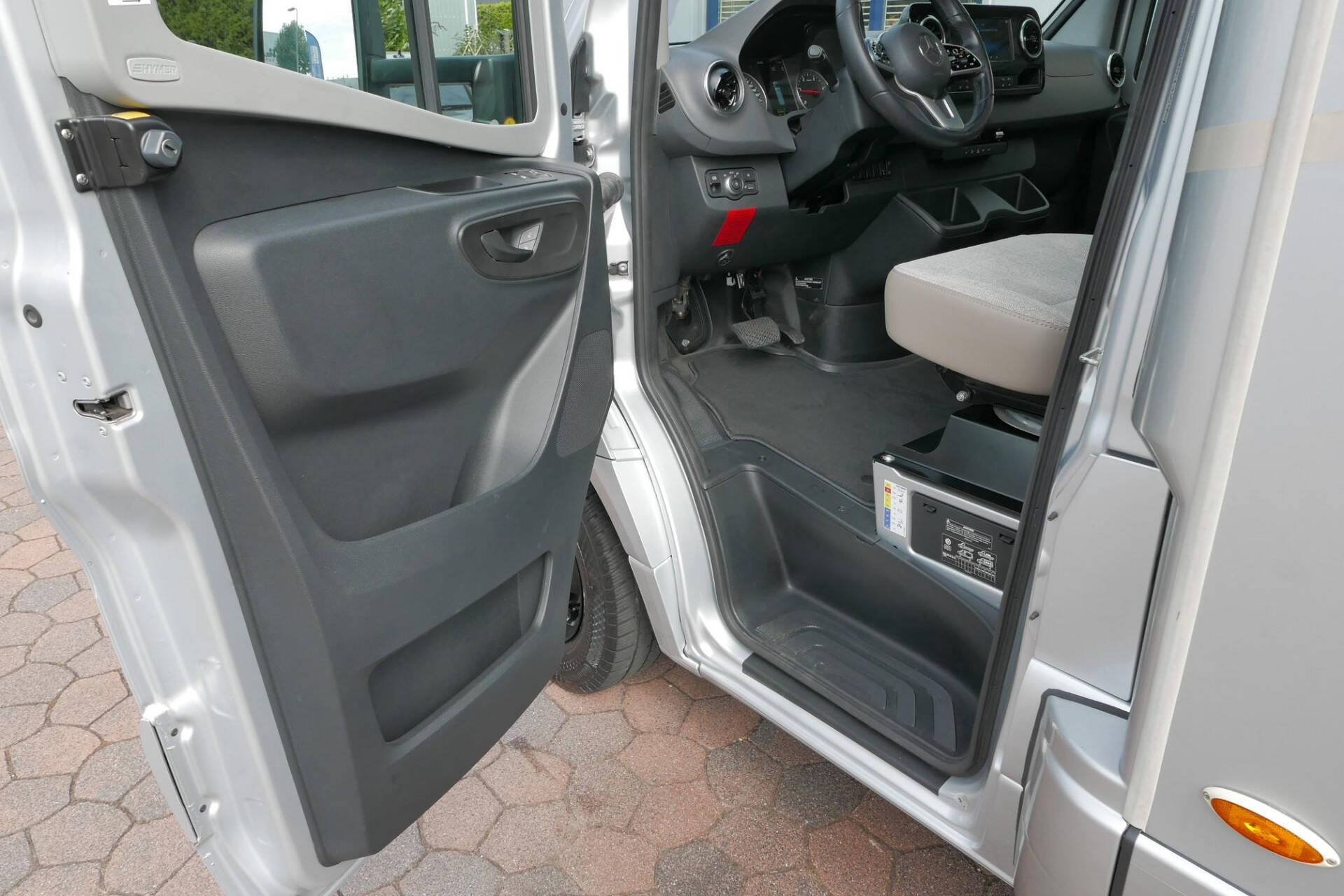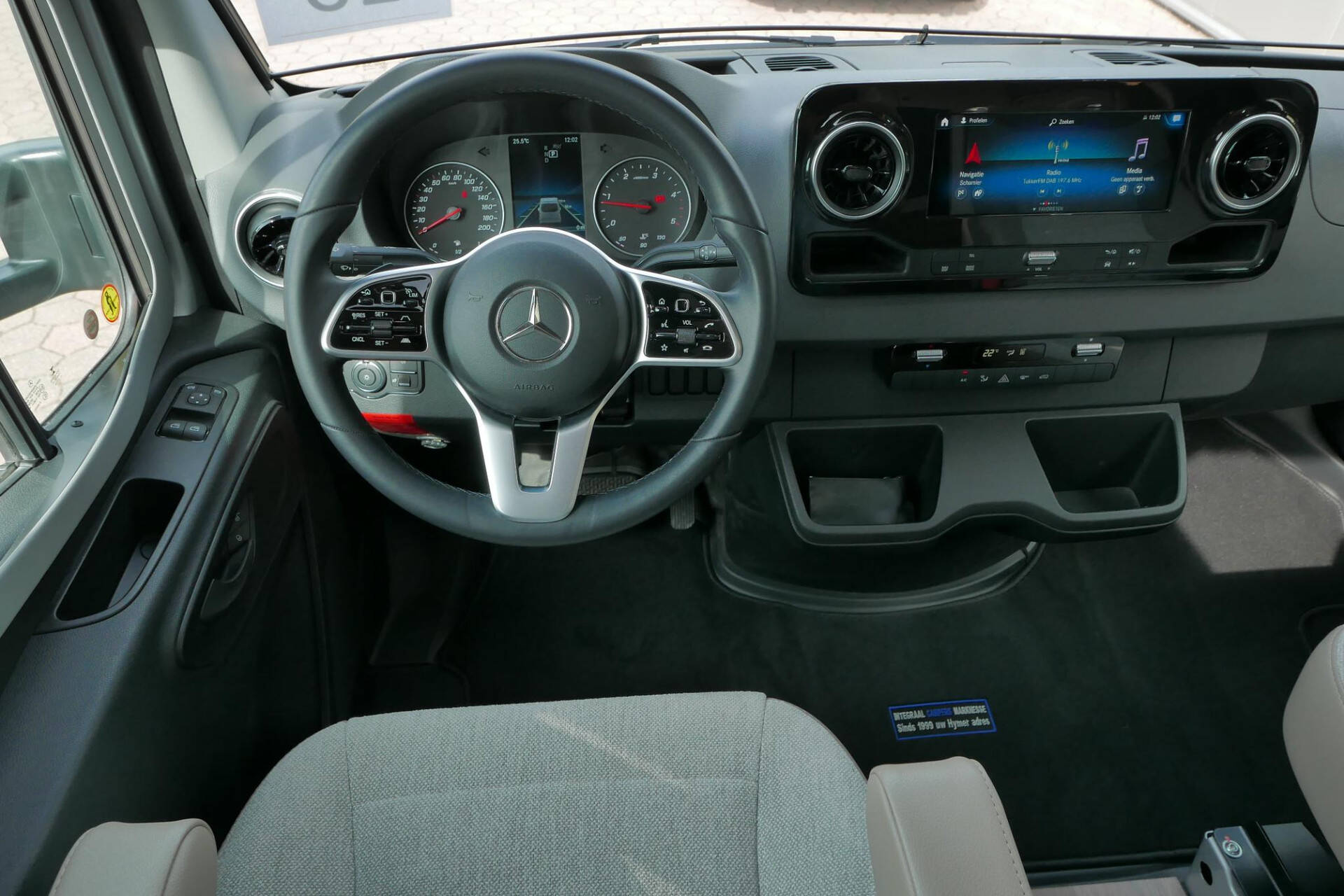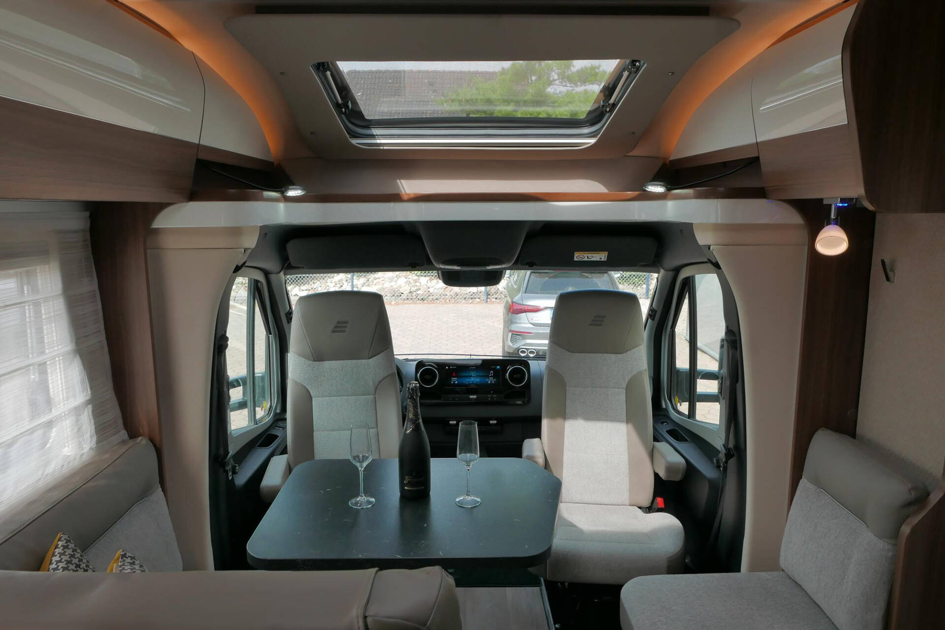 De cabine van deze half-integraalcamper is makkelijk toegankelijk via de bestuurders- en de passagiersdeur. De cabine is uitgerust met het Mercedes-Benz 10,25 inch MBUX multimedia systeem en 2 luxe pilotenstoelen die volledig verstelbaar en draaibaar zijn. Verder beschikt deze camper over: