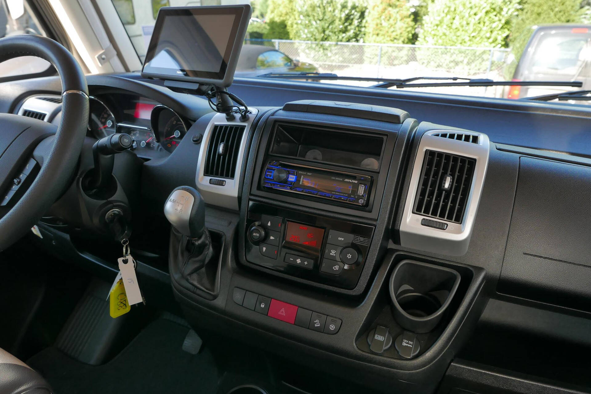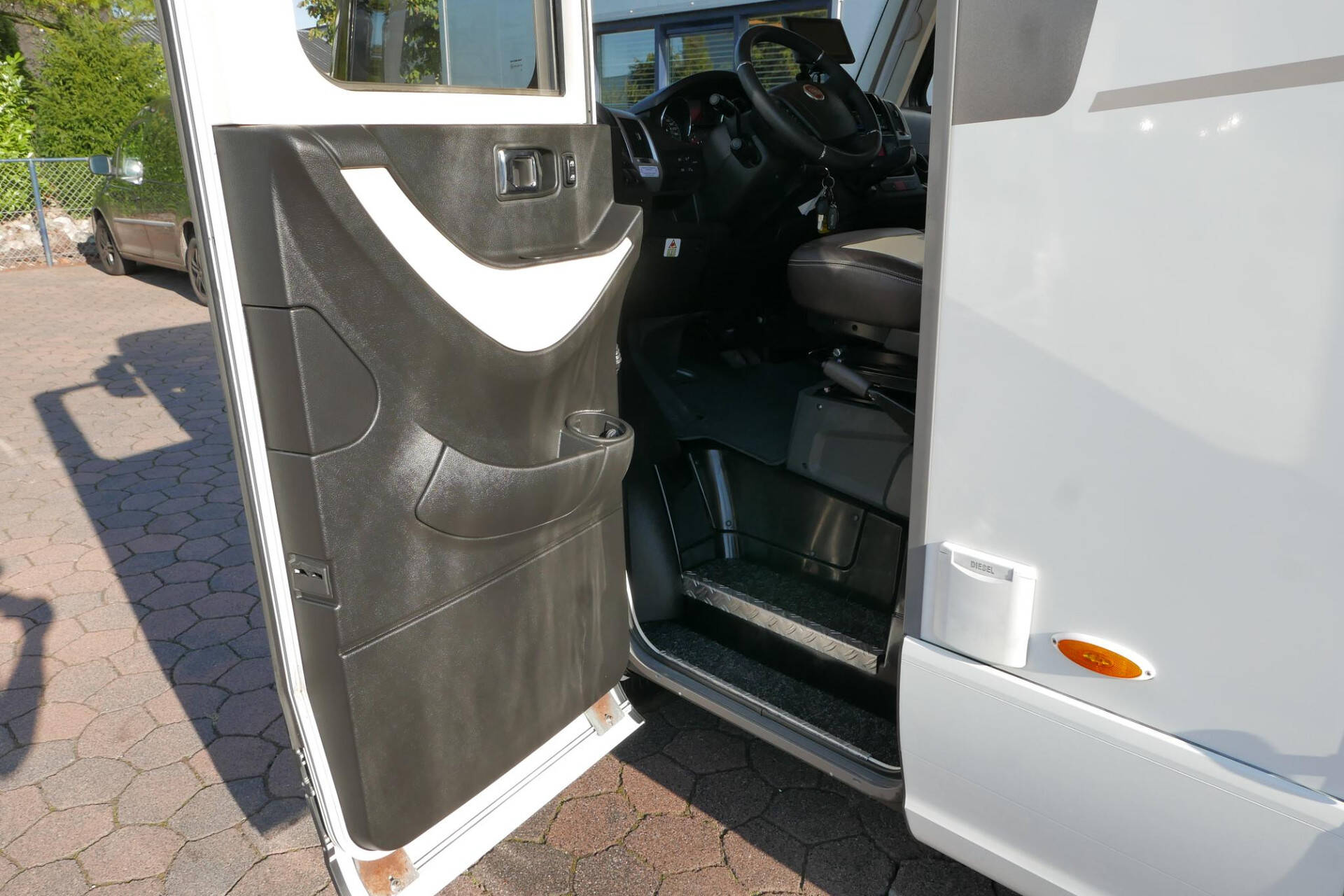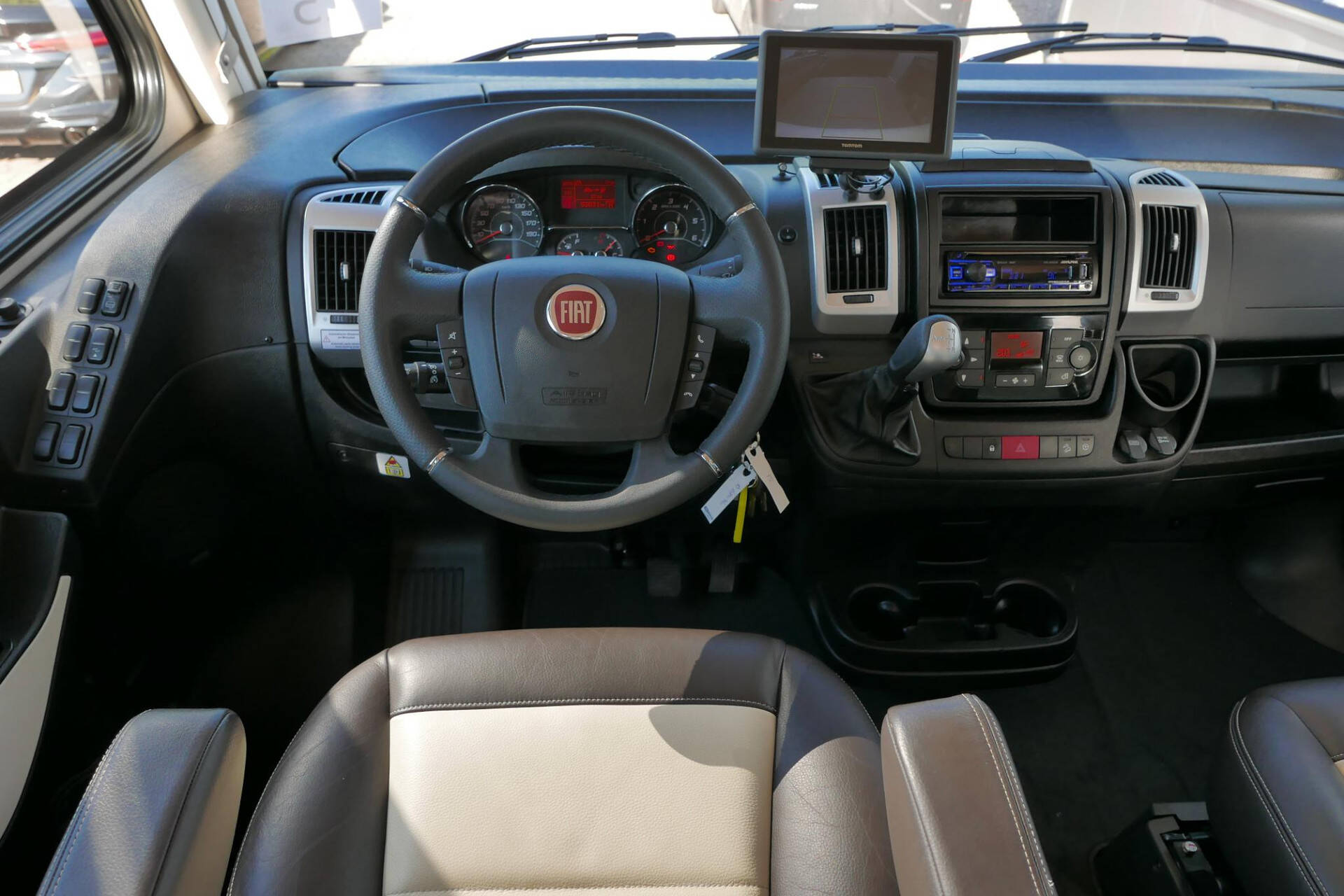 In de cabine van deze integraal camper valt meteen het waanzinnige panorama uitzicht op. Niet alleen om volop te genieten van de omgeving om u heen, maar ook voor een goed overzicht op het verkeer tijdens het rijden. De cockpit is voorzien van cruise control en automatische airco. De 2 luxe Aguti ergoflex pilotenstoelen zijn verstel- en draaibaar.