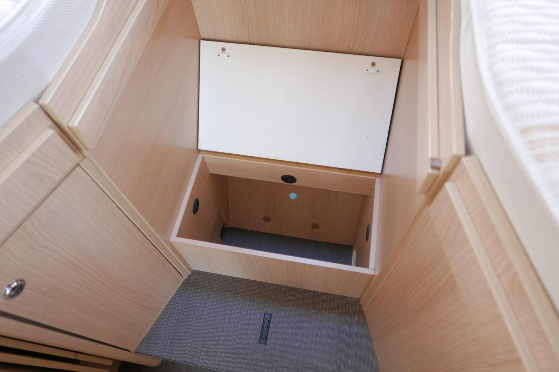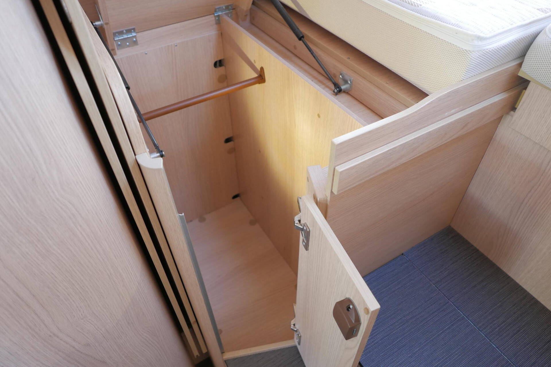 Achterin de camper bevinden zich 2 enkele lengte bedden. Onder de bed is extra kastruimte aanwezig.