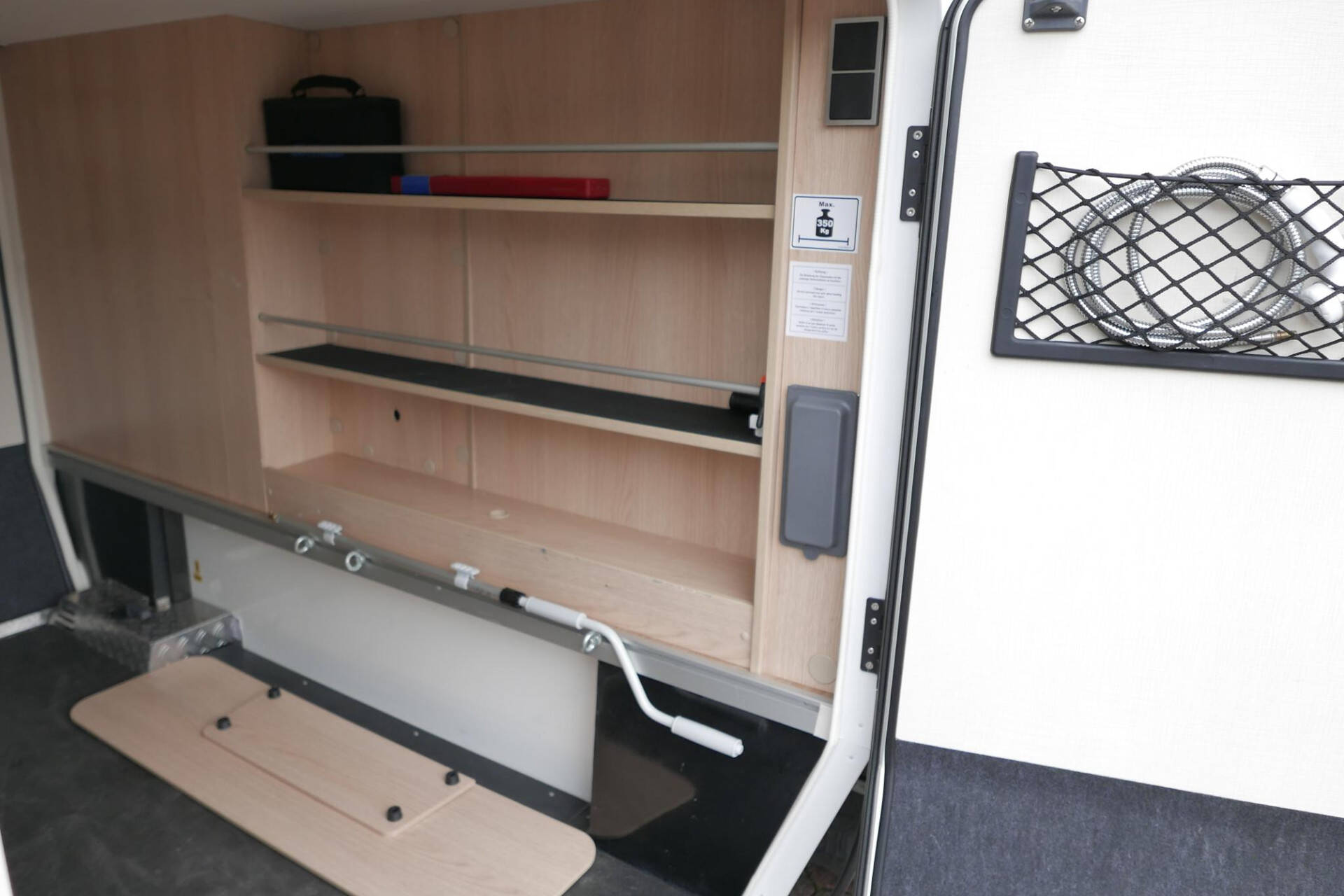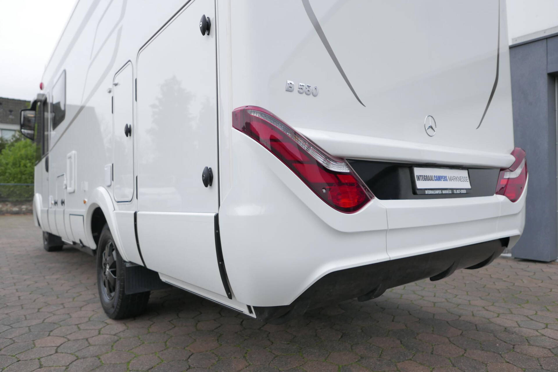 De grote garage heeft een laadhoogte van 132 cm, is van beide kanten te bereiken en biedt voldoende ruimte voor uw fietsen/scooter en bagage. Tot slot is deze Hymer BMC I 580 voorzien van onder andere: