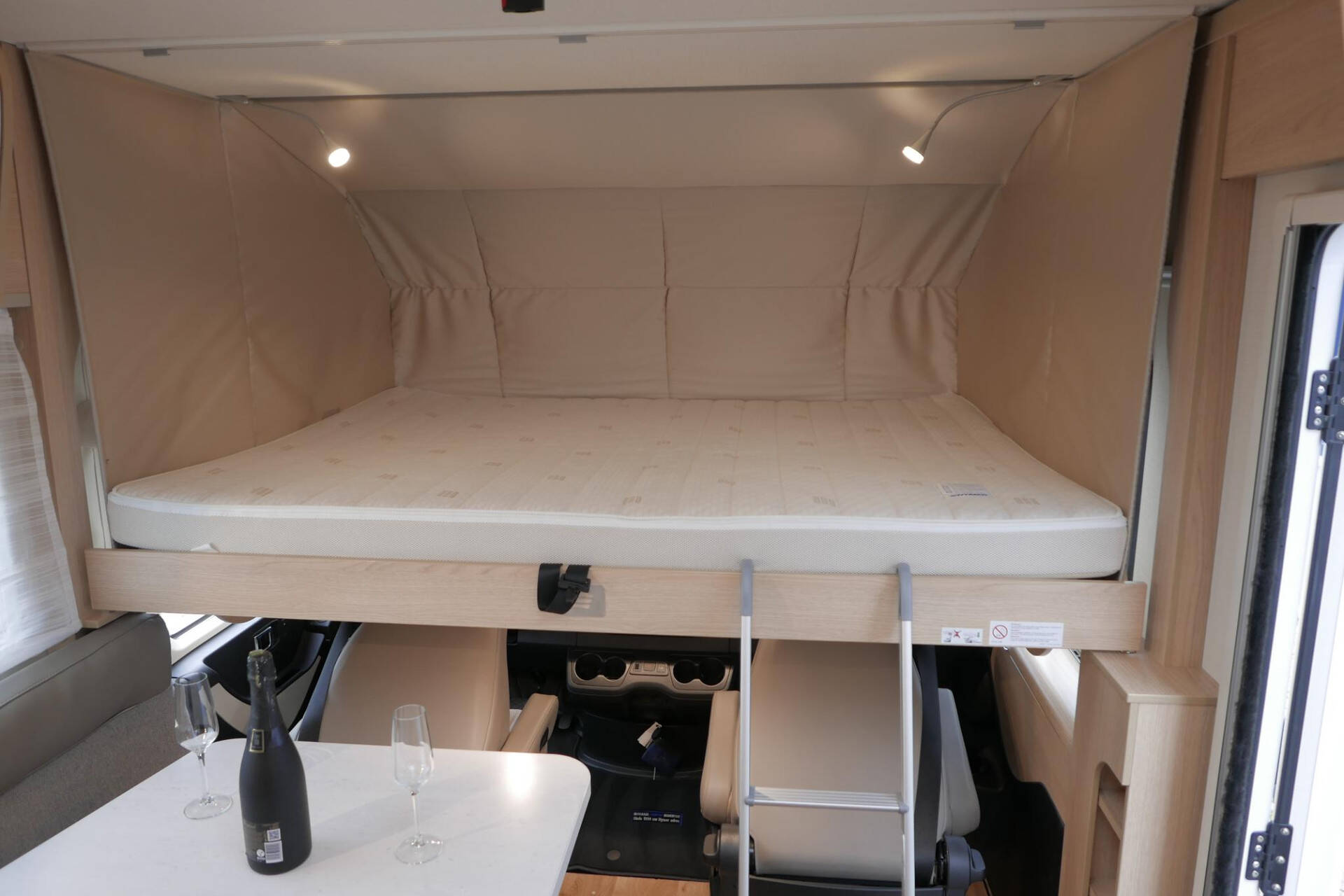 • Boven de cabine is een ruim 2 persoons hefbed aanwezig