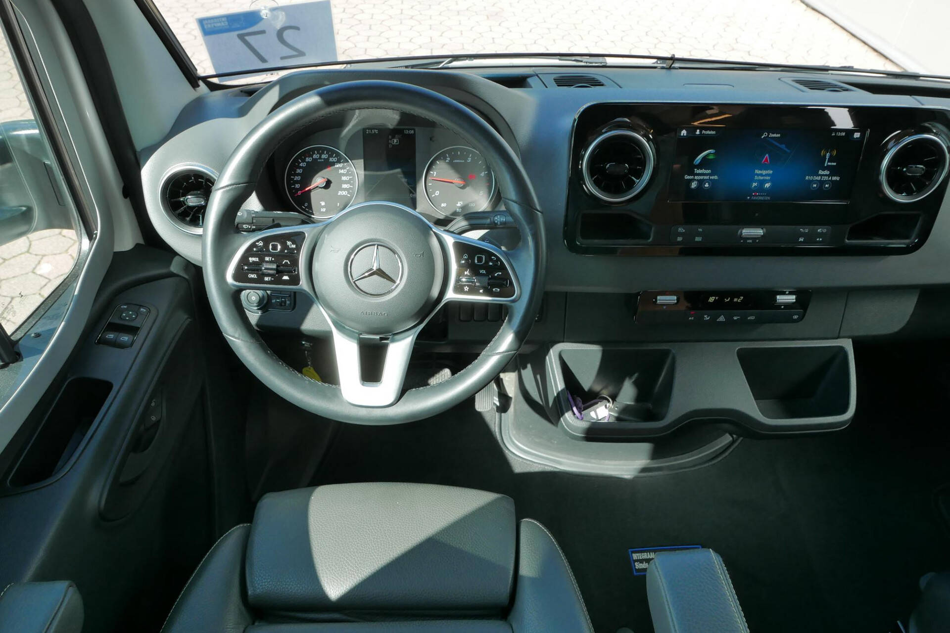 De cabine van deze half-integraalcamper is makkelijk toegankelijk via de bestuurders- en de passagiersdeur. De cabine is uitgerust met het Mercedes-Benz 10,25 inch MBUX multimedia systeem en 2 luxe pilotenstoelen die volledig verstelbaar en draaibaar zijn. Verder beschikt deze camper over: