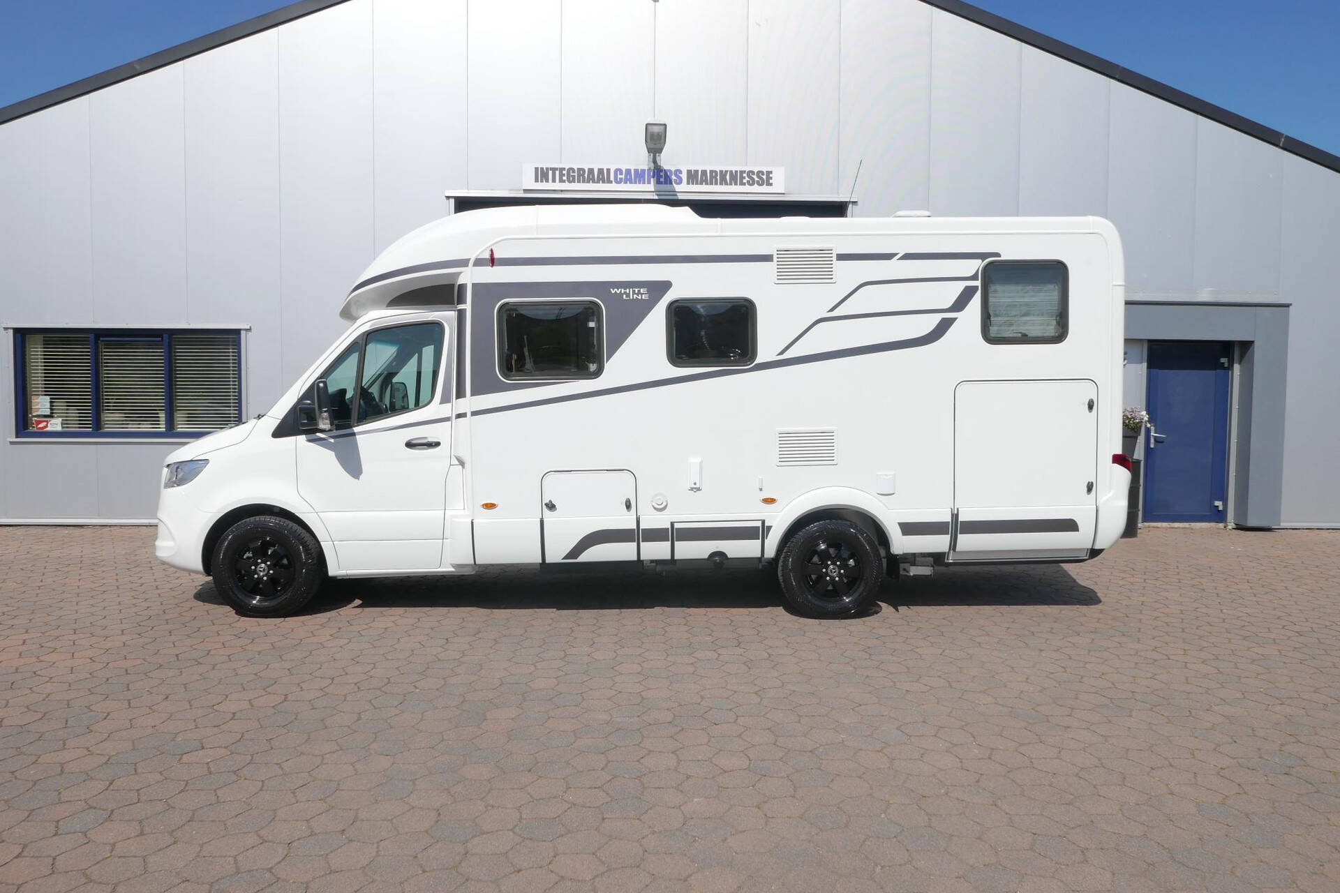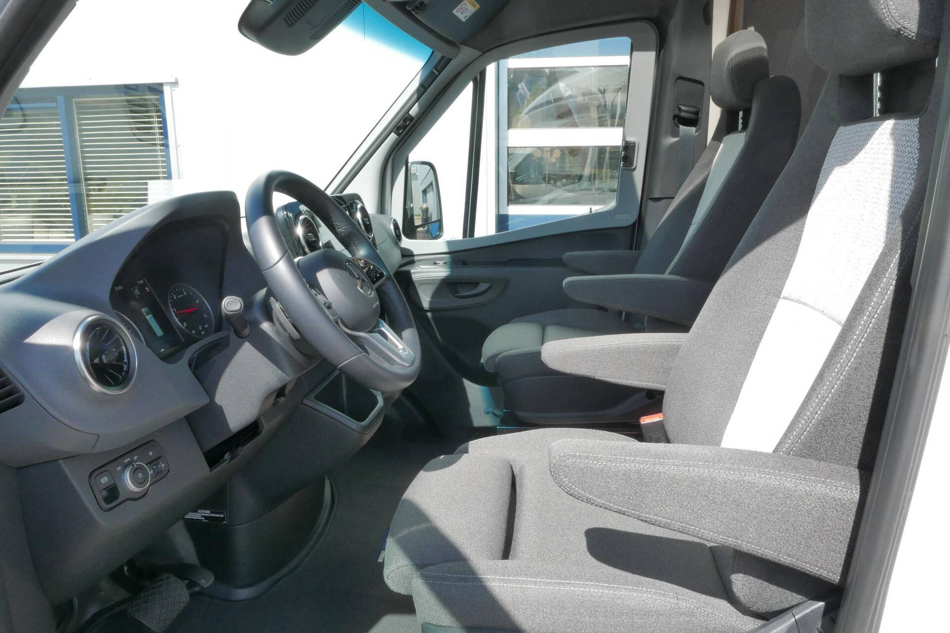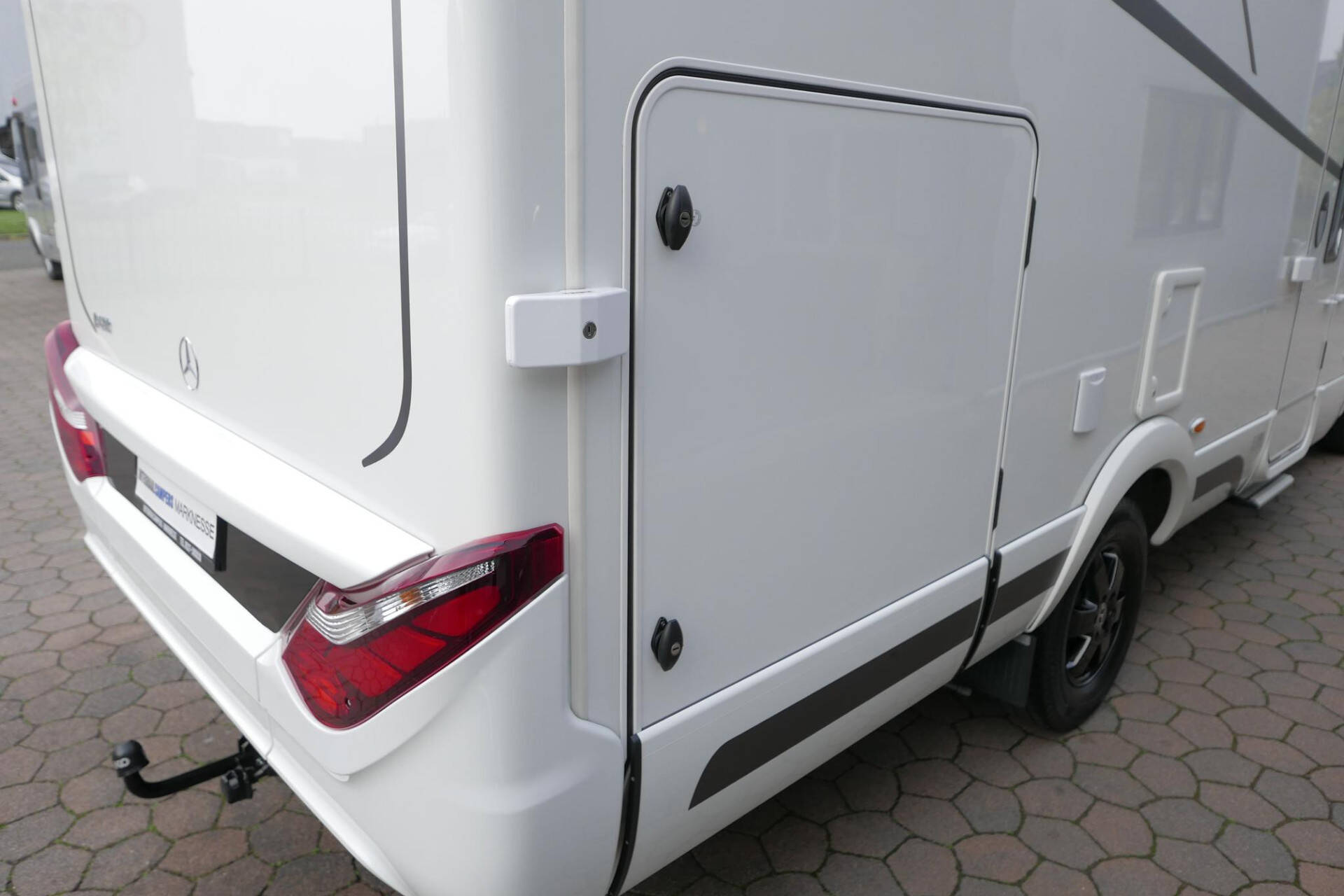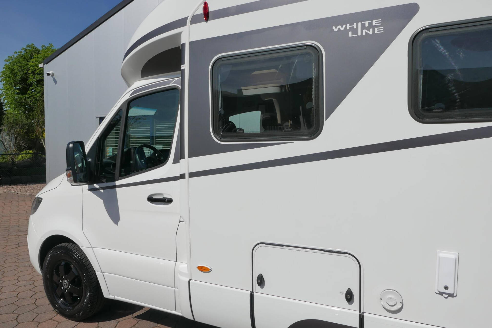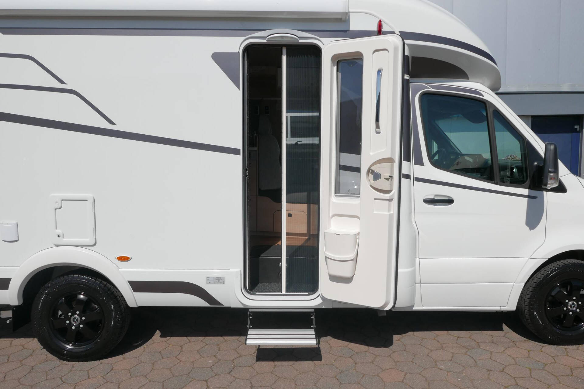 De cabine van deze half-integraalcamper is makkelijk toegankelijk via de bestuurders- en de passagiersdeur. De cabine is uitgerust met het Mercedes-Benz 10,25 inch MBUX multimedia systeem en 2 luxe pilotenstoelen die volledig verstelbaar en draaibaar zijn. Verder beschikt deze camper over: