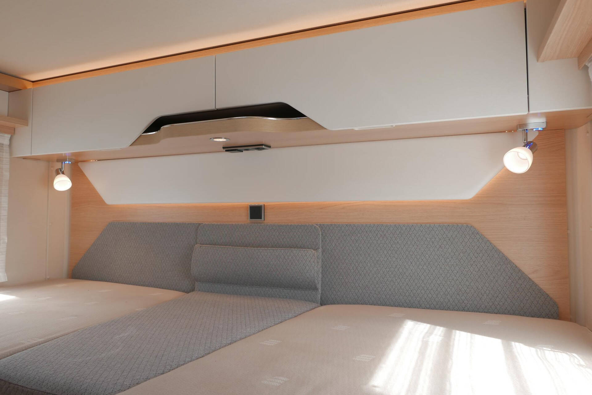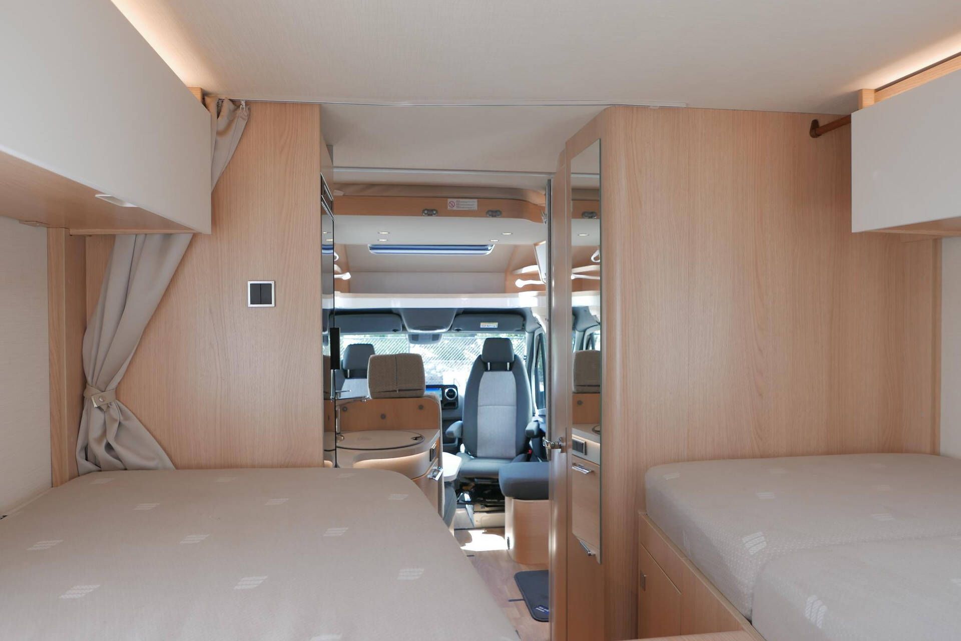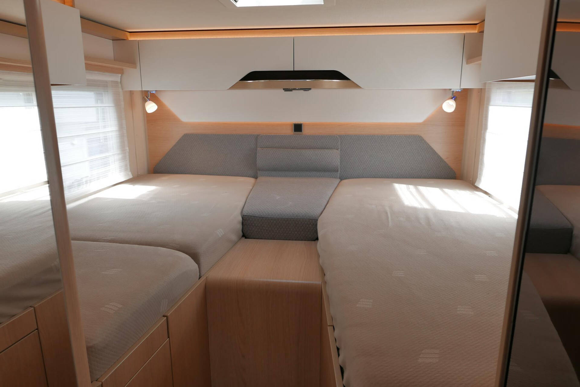 Achterin bevinden zich de 2 enkele lengte bedden. Onder de bedden is aan beide kanten nog meer kastruimte te vinden.