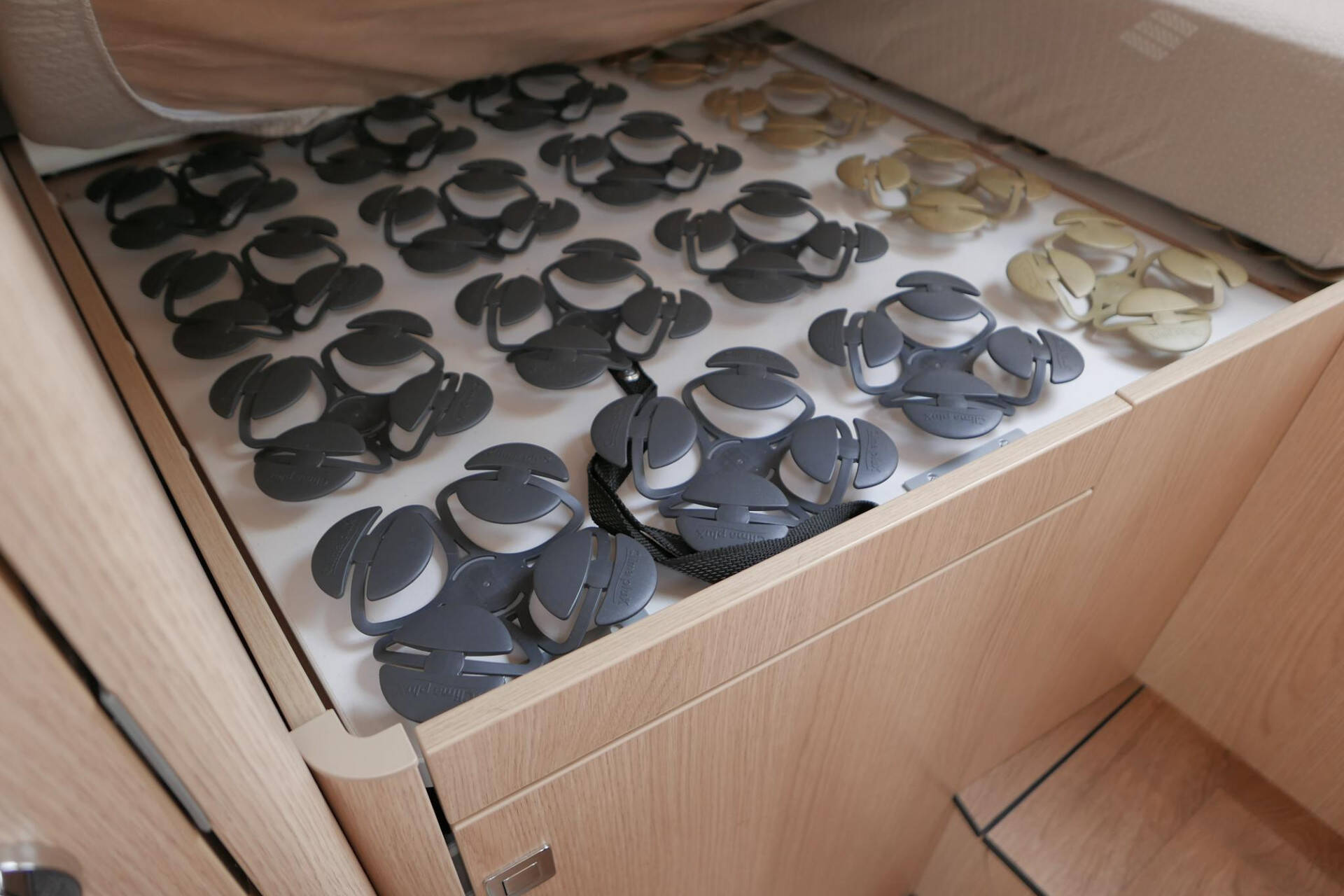 Onder de bedden is aan beide kanten extra (hang)kastruimte aanwezig.