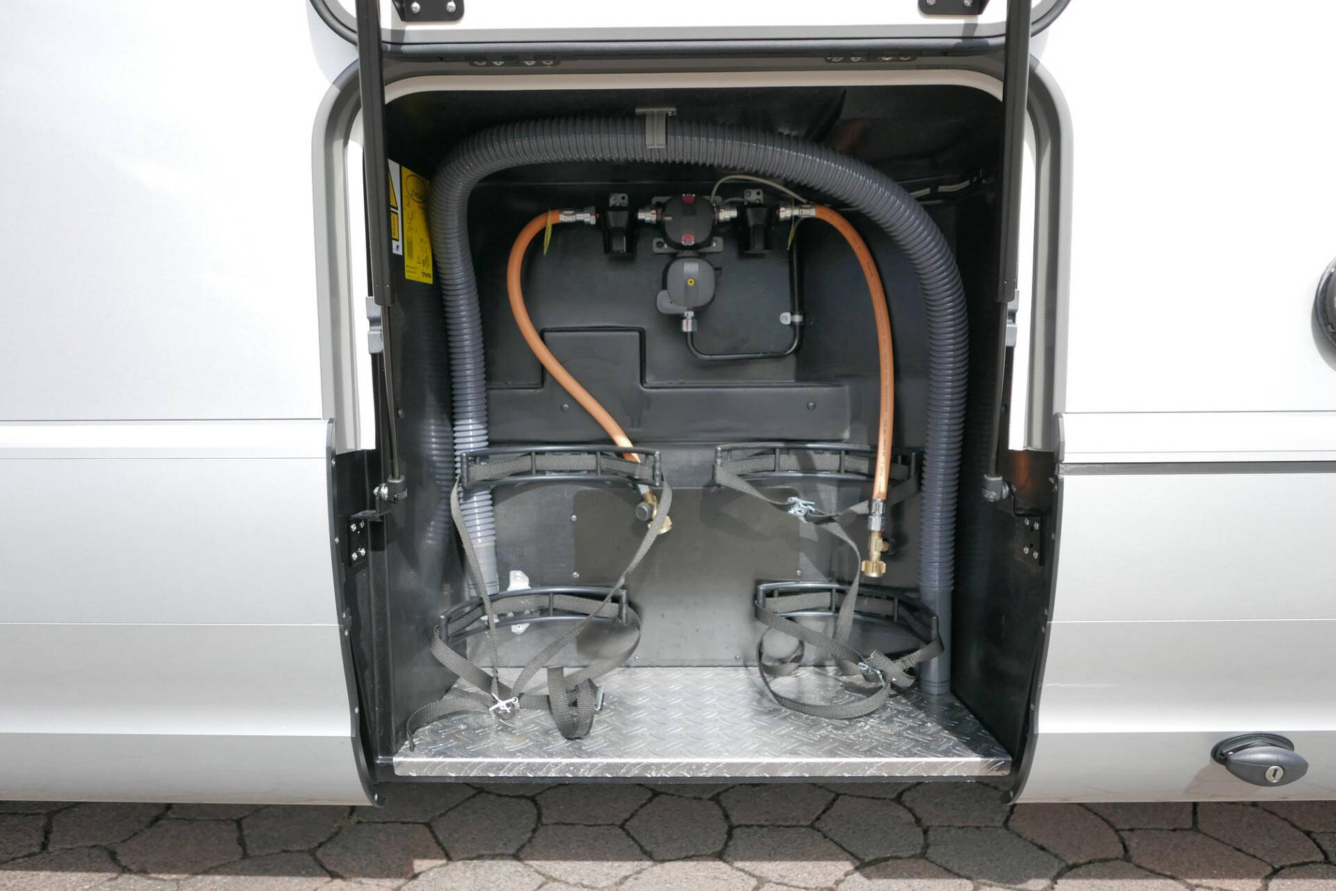 De grote garage heeft een laadhoogte van 132 cm, is van beide kanten te bereiken en biedt voldoende ruimte voor uw fietsen/scooter en bagage. Tot slot is deze Hymer BML I 780 zeer compleet uitgerust met onder andere: