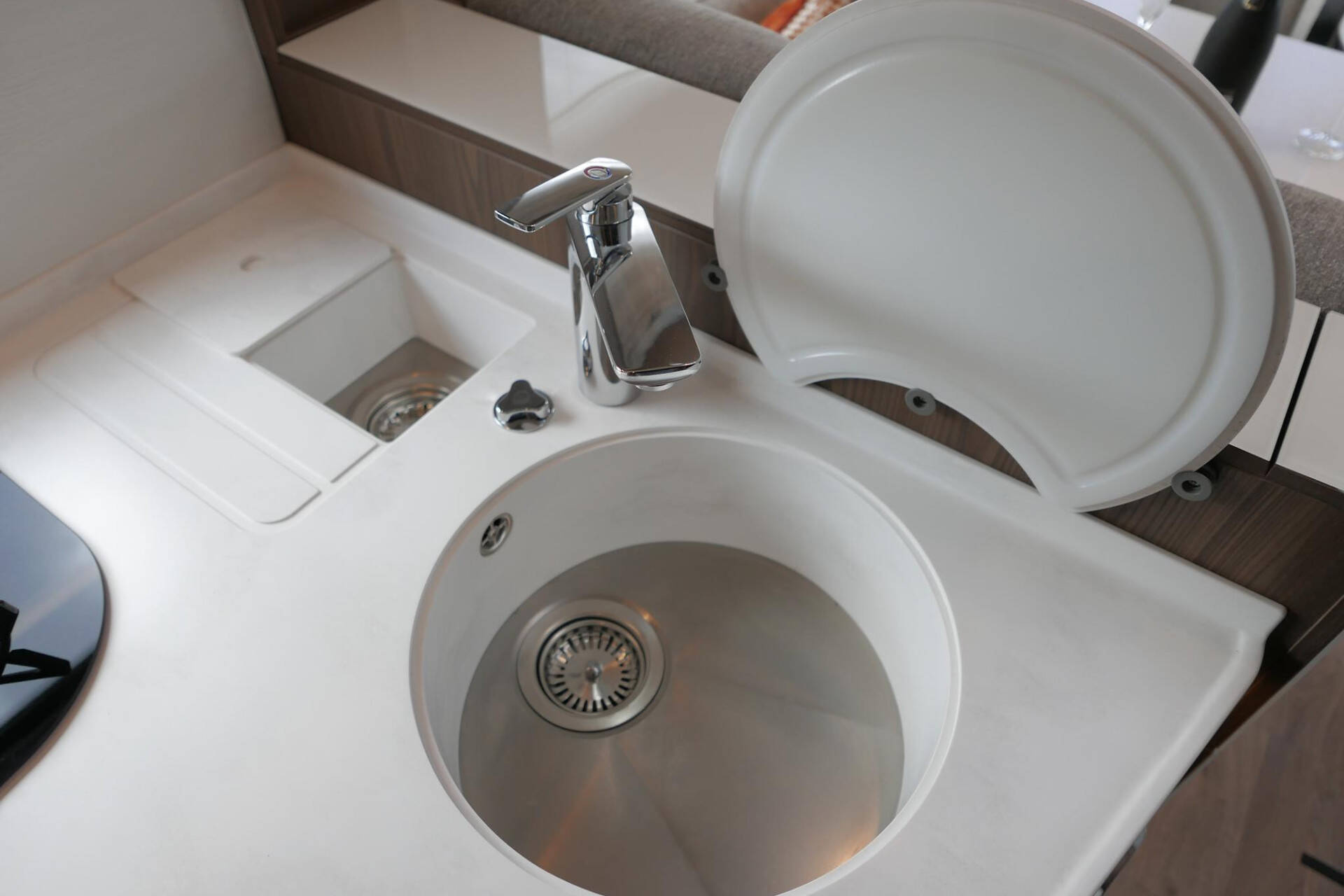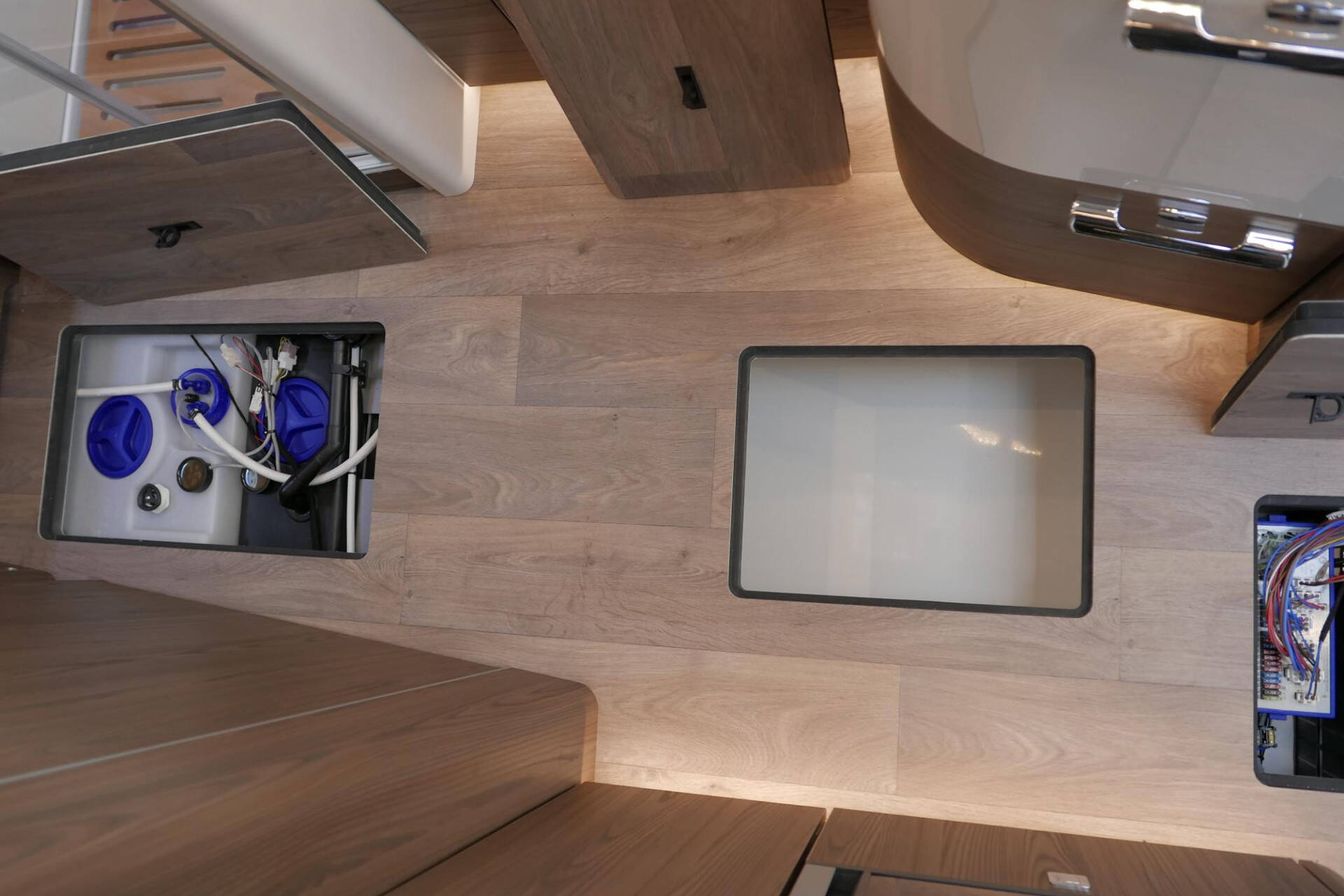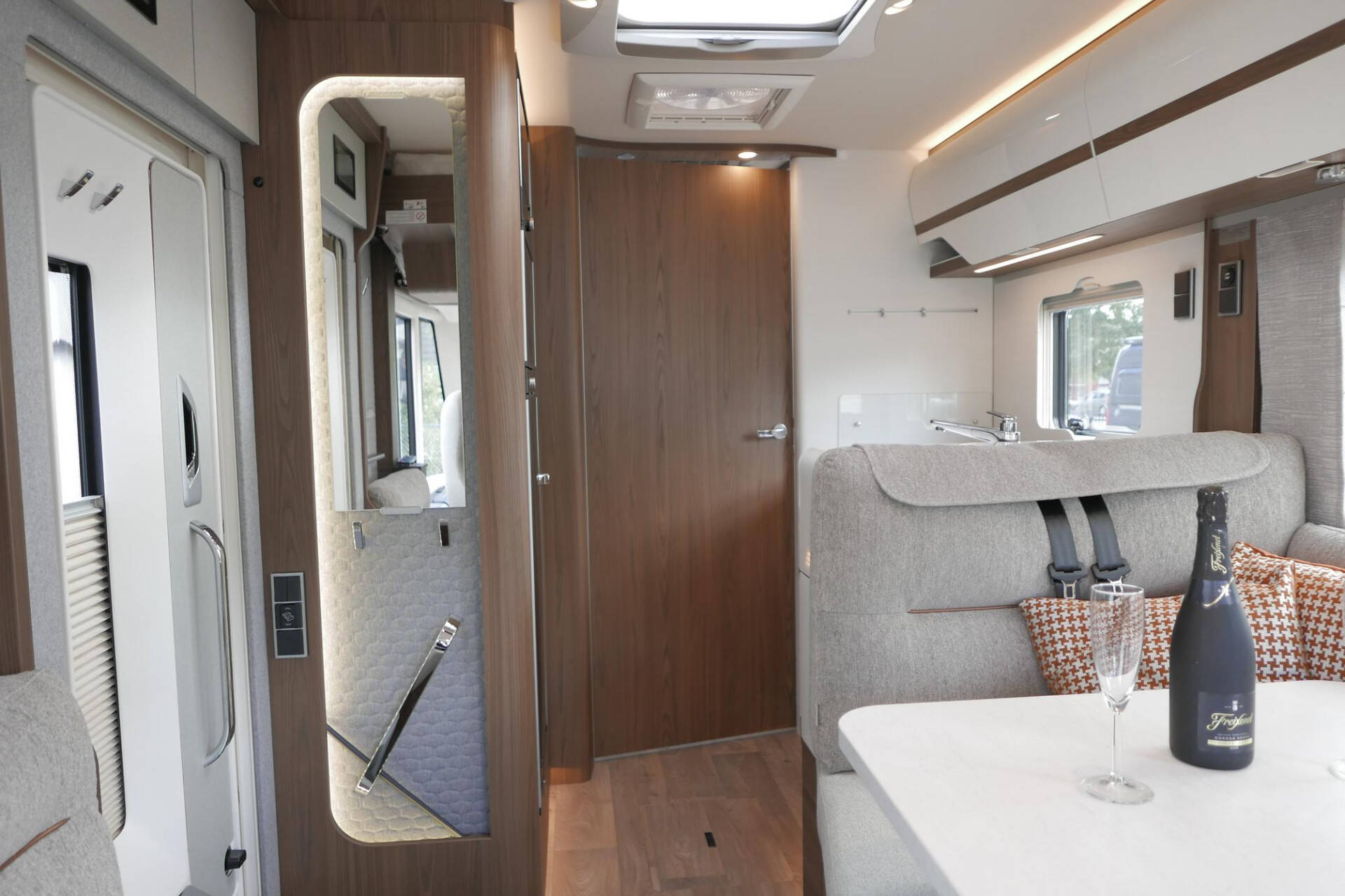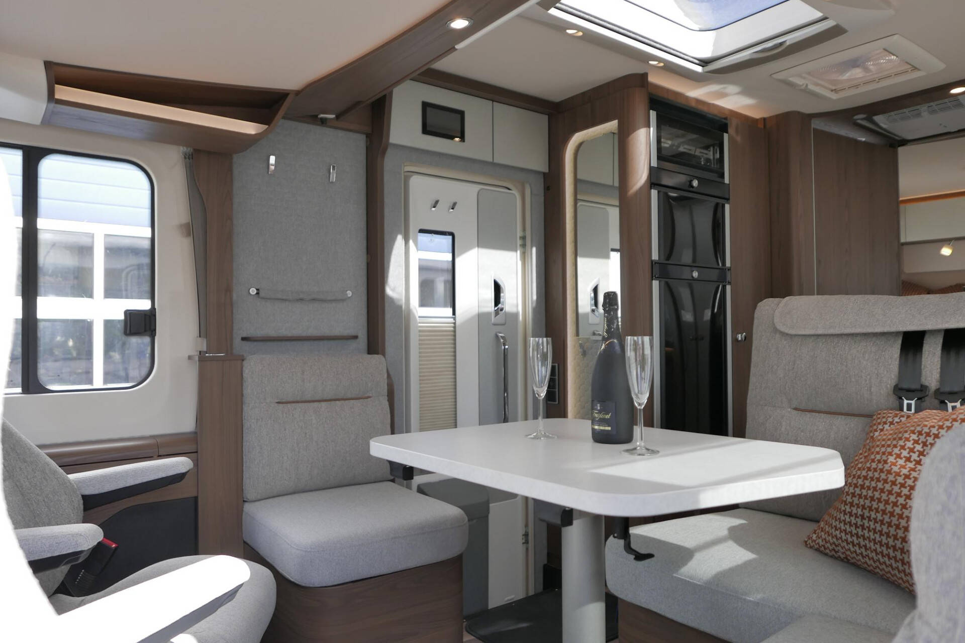 Door de voorstoelen te draaien ontstaat een royale zithoek met L-zit met een 360° draaibare en verstelbare tafel. Het Velvet Ash meubeldecor in combinatie met de Phoenix bekleding zorgen een chique uitstraling. Door het AL-KO chassis beschikt deze camper over een vlakke vloer met in de mee verwarmde dubbele bodem extra opbergruimte die zowel van binnenuit als van buitenaf te bereiken is. Ook de 180 liter schoon- 150 liter vuilwatertank bevinden zich in de dubbele bodem. Natuurlijk zijn alle ramen de toegangsdeur voorzien van horren en plisséverduistering.
