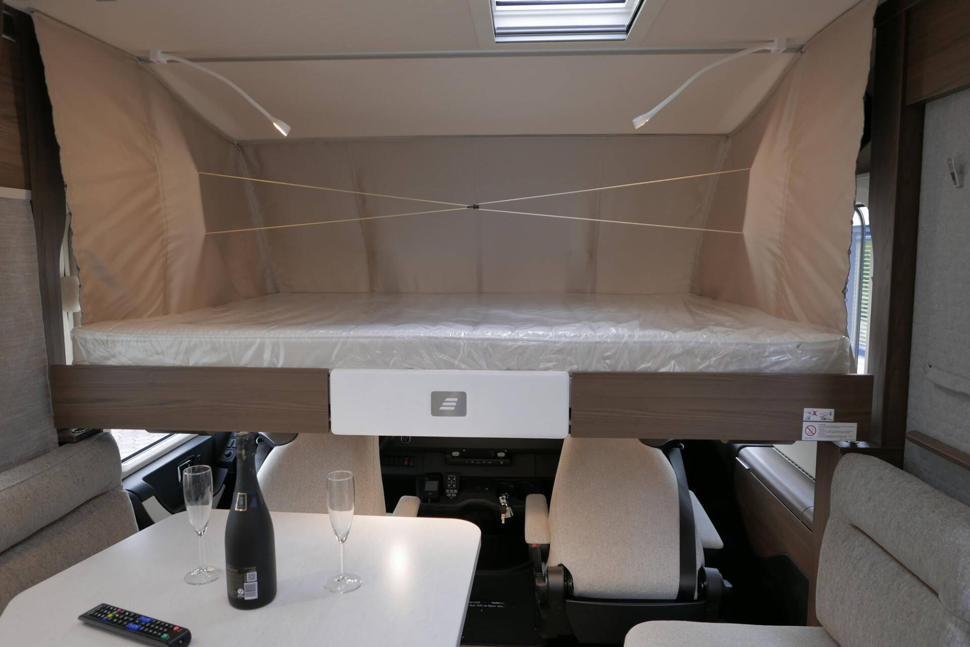 • Boven de zithoek een 2 persoons hefbed met comfortschotelsysteem