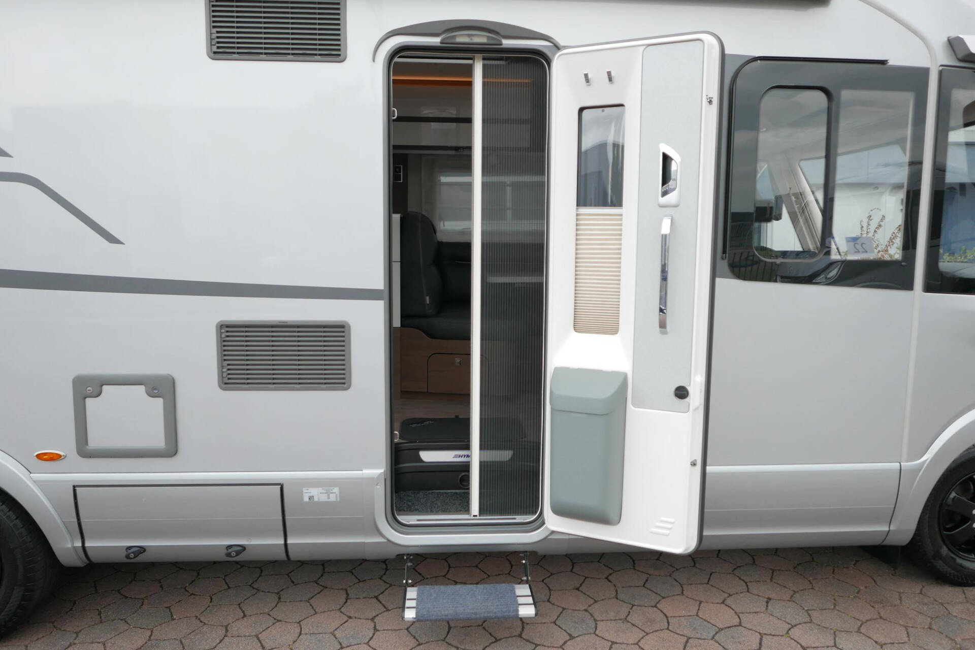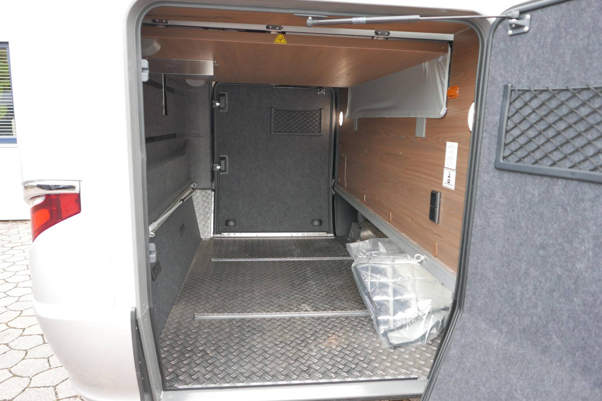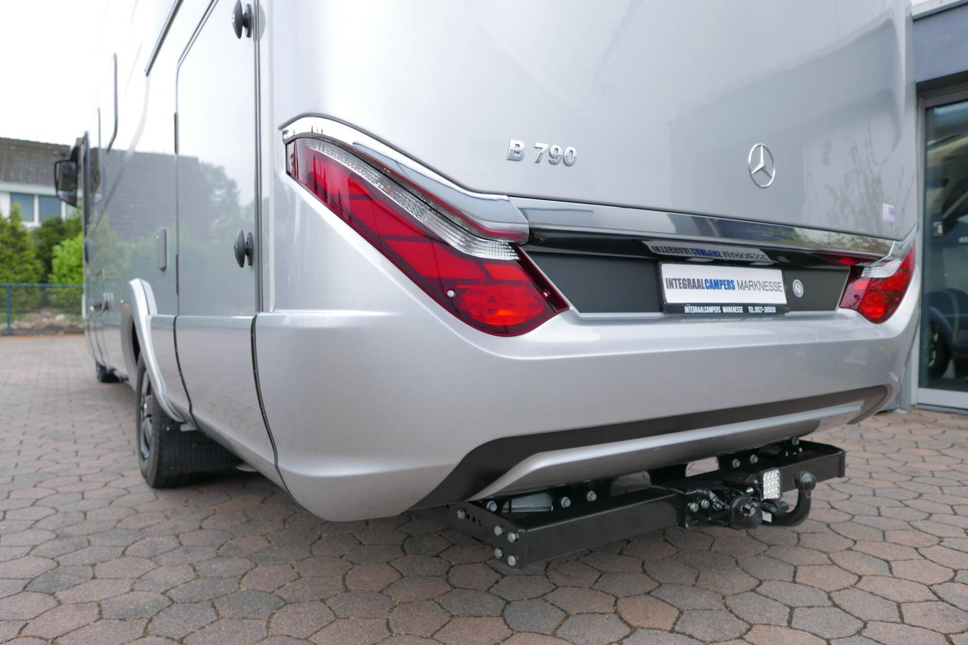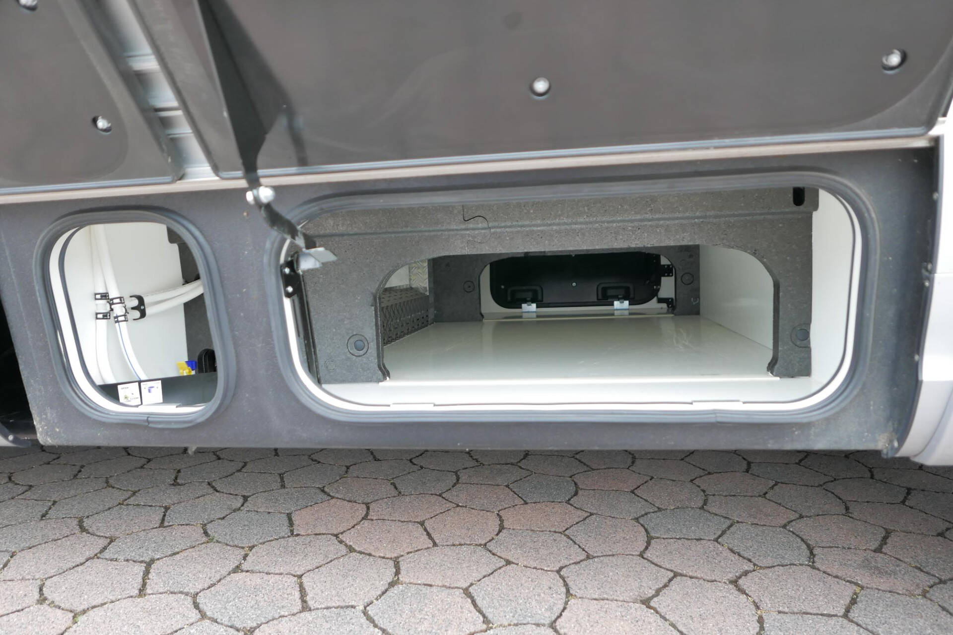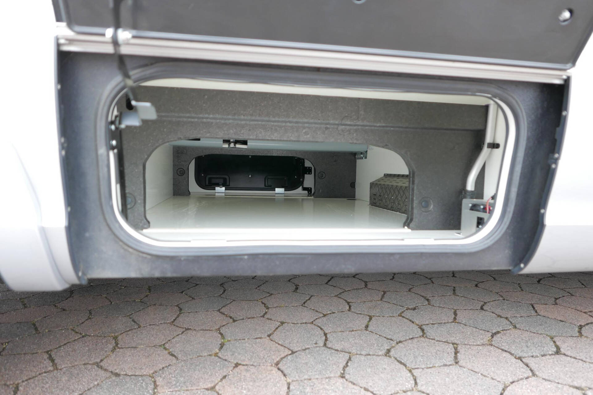De grote garage heeft door het elektrisch verstelbare queensbed een laadhoogte van 114 cm. Deze ruimte is van beide kanten te bereiken en biedt voldoende ruimte voor uw (elektrische) fietsen en bagage. Tot slot is deze Hymer BML I 790 zeer compleet uitgerust met onder andere: