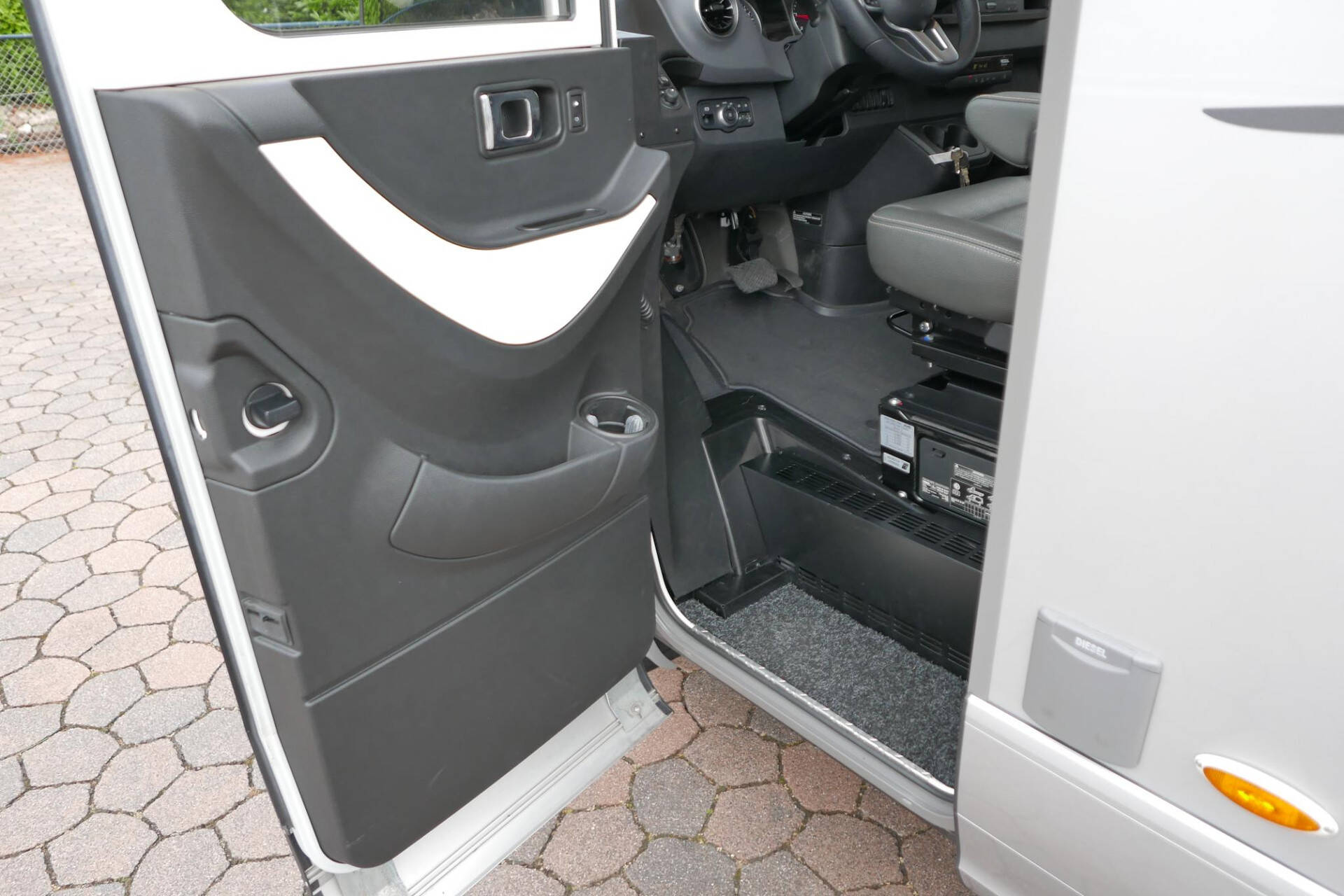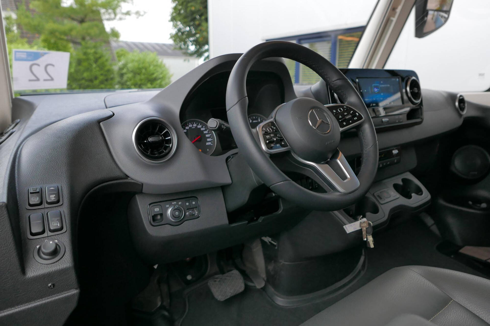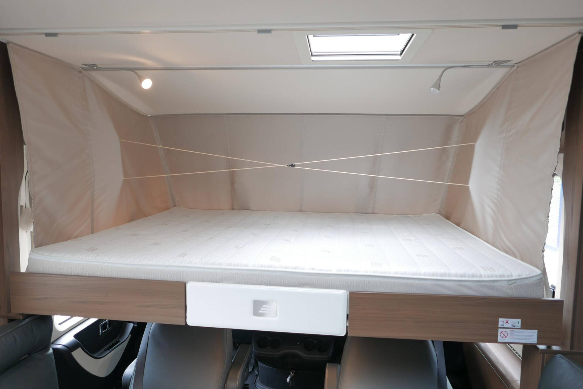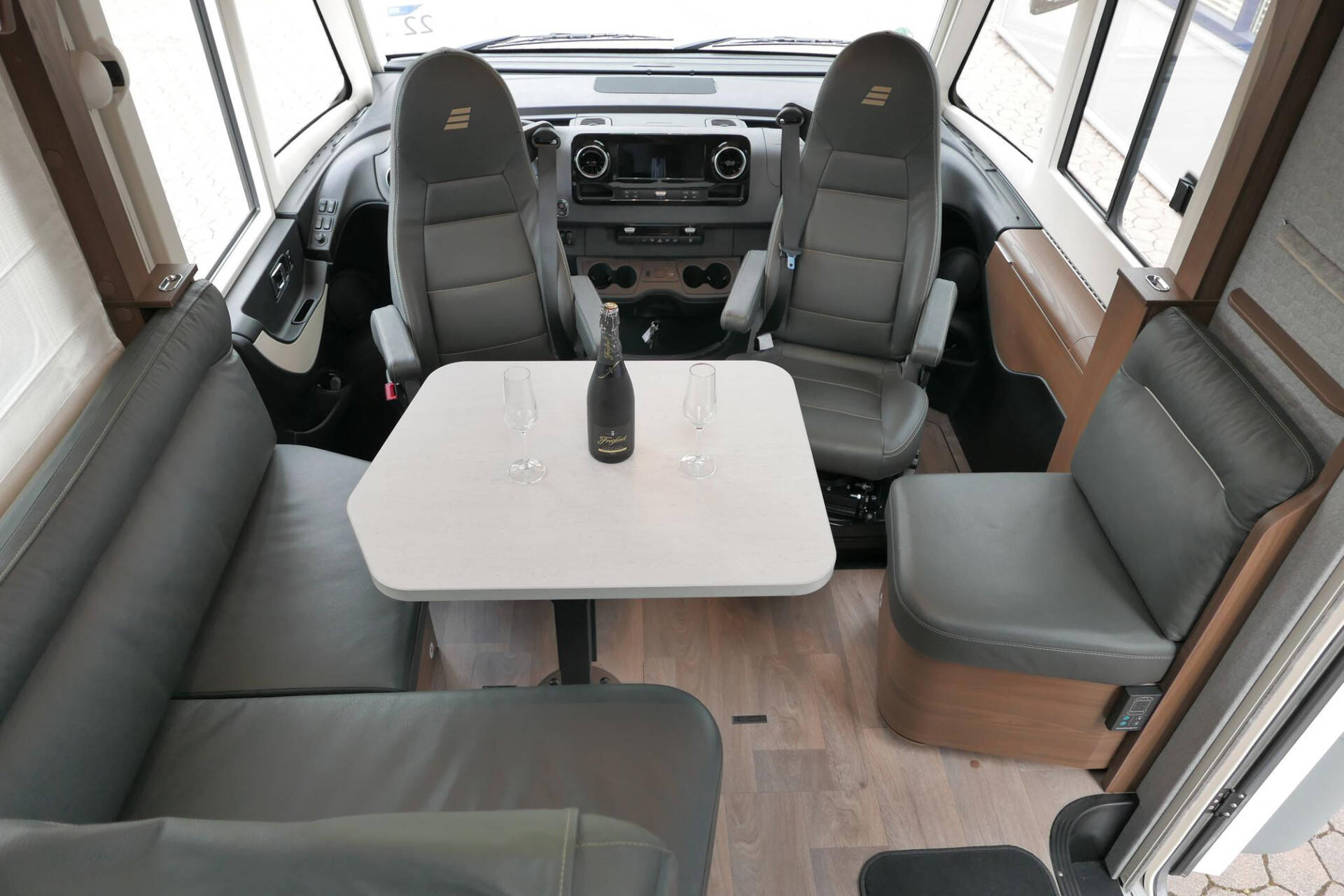 In de cabine van deze integraalcamper valt meteen het waanzinnige panorama uitzicht op, niet alleen om volop te genieten van de omgeving, maar ook voor een goed overzicht op het verkeer tijdens het rijden. De cockpit is voorzien van het Mercedes-Benz 10,25 inch MBUX multimediasysteem waarop onder andere de navigatie, de achteruitrijcamera en de DAB+ radio te bedienen zijn. De 2 comfortabele Aguti ergoflex stoelen zijn volledig verstelbaar en draaibaar. Verder beschikt deze camper over: