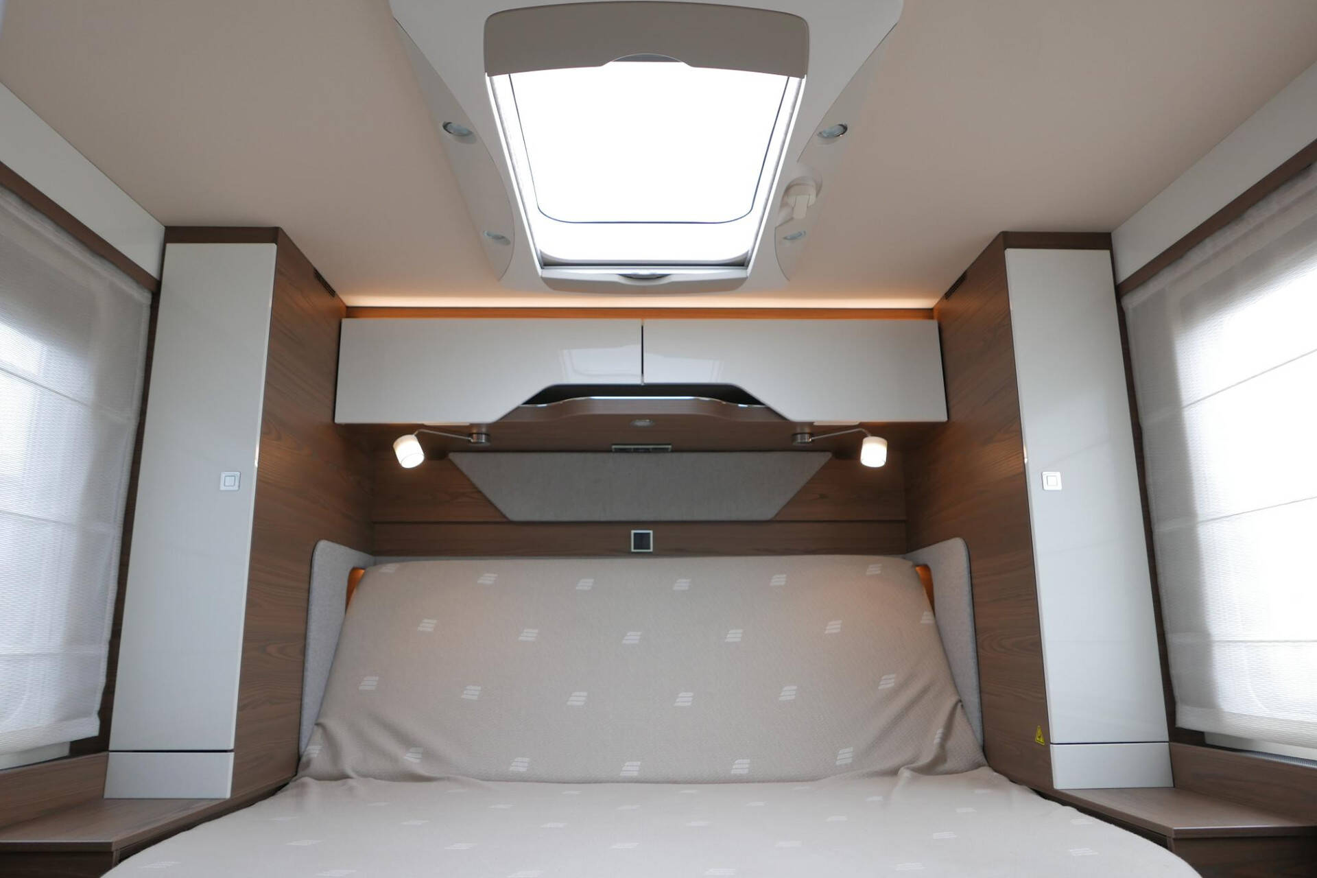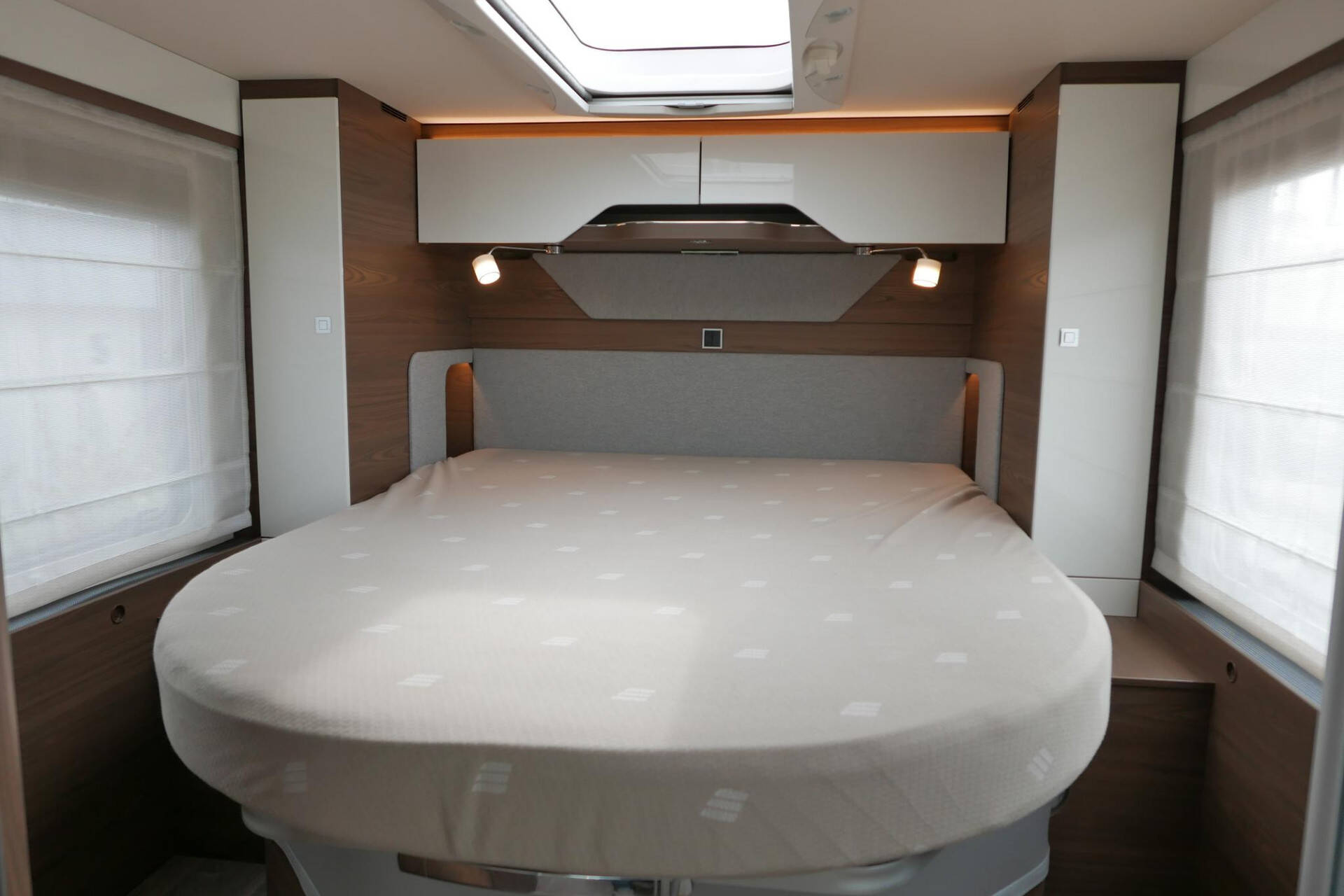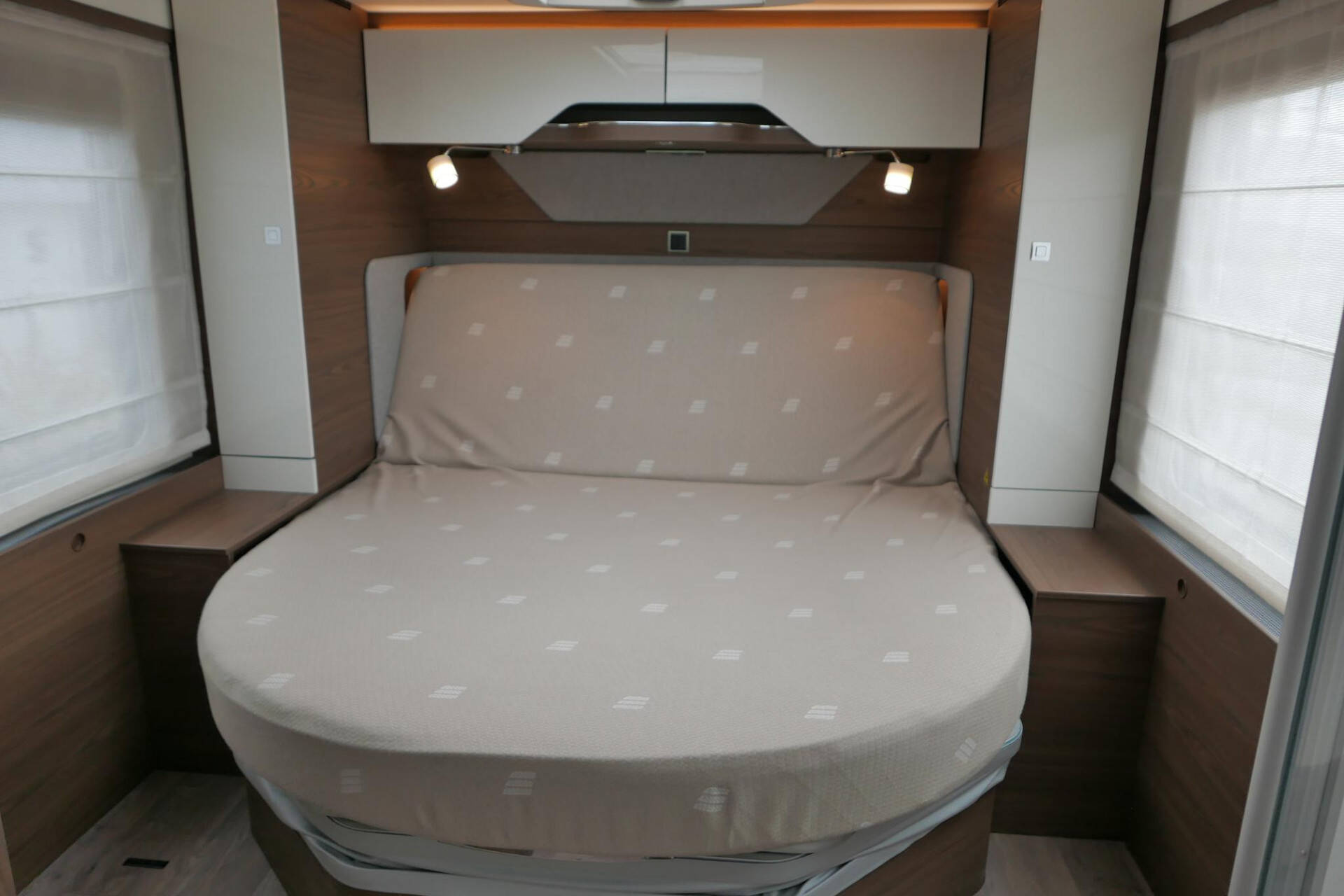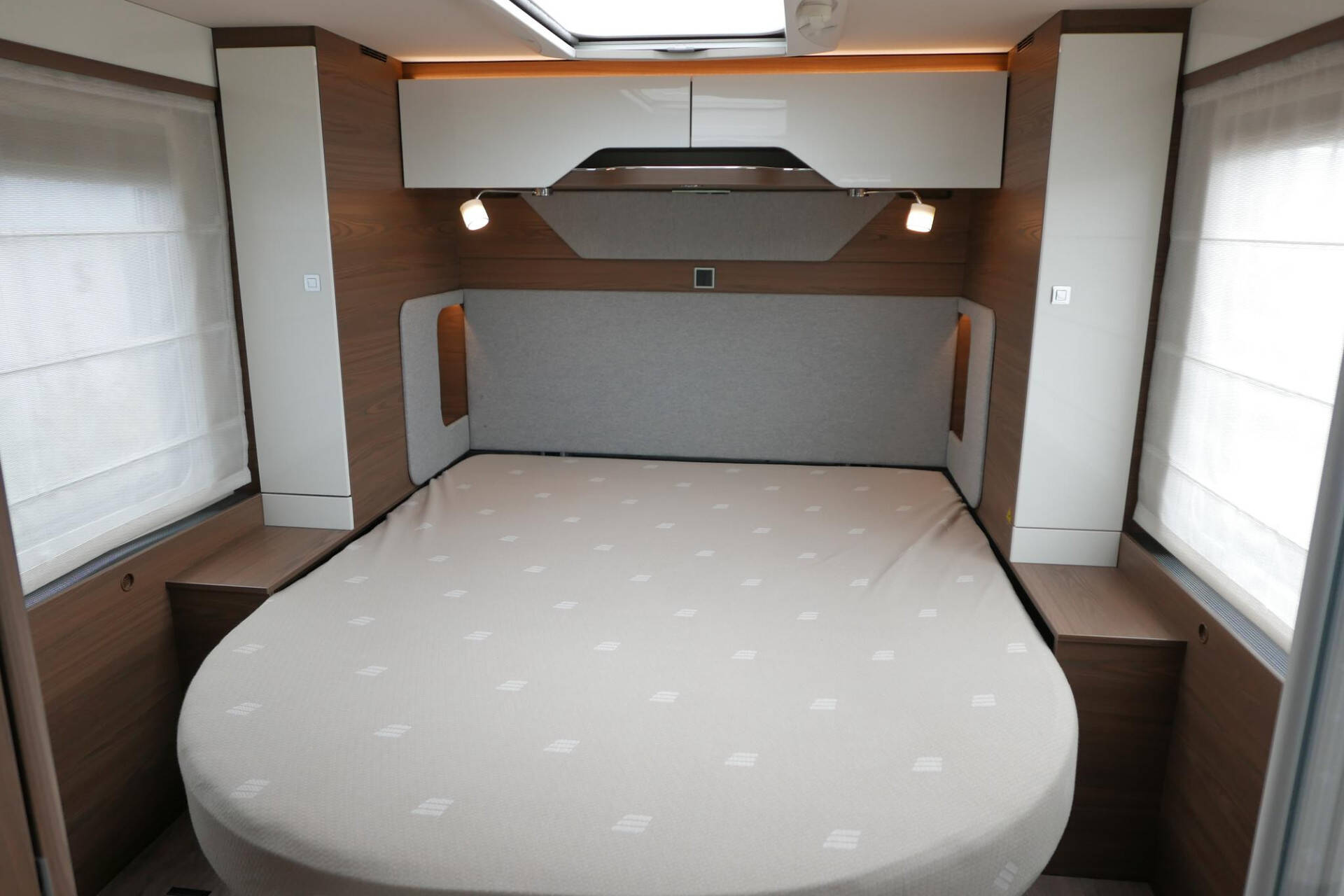 Door de voorstoelen te draaien ontstaat een royale zithoek met L-zit met een 360° draaibare tafel. Het Velvet Ash meubeldecor in combinatie met de luxe leder Grigio bekleding zorgen voor een chique uitstraling. Door het AL-KO chassis beschikt deze camper over een vlakke vloer met in de mee verwarmde dubbele bodem extra opbergruimte die zowel van binnenuit als van buitenaf te bereiken is. Ook de 180 liter schoon- 150 liter vuilwatertank bevinden zich in de dubbele bodem. Natuurlijk zijn alle ramen de toegangsdeur voorzien van horren en plisséverduistering.