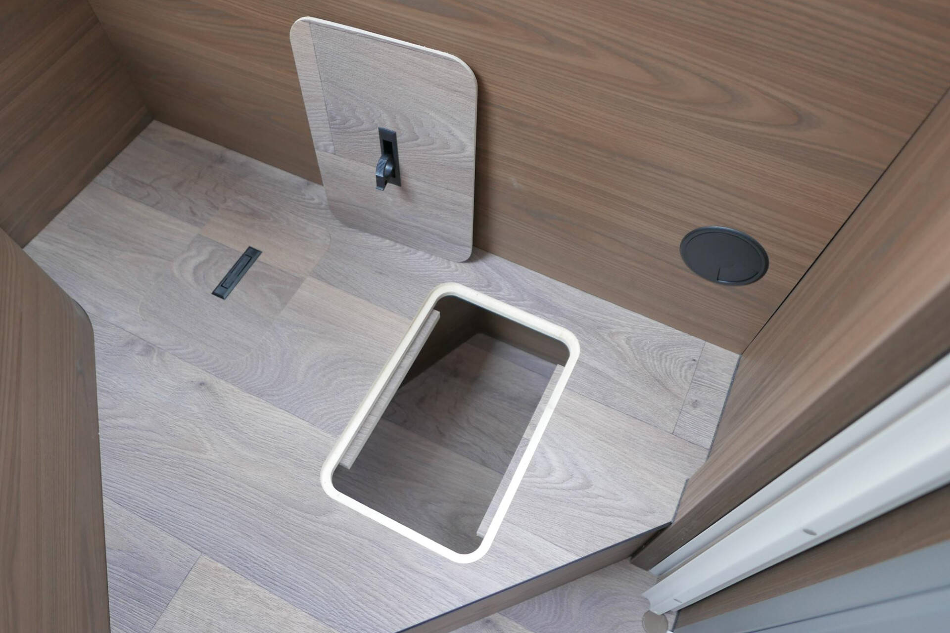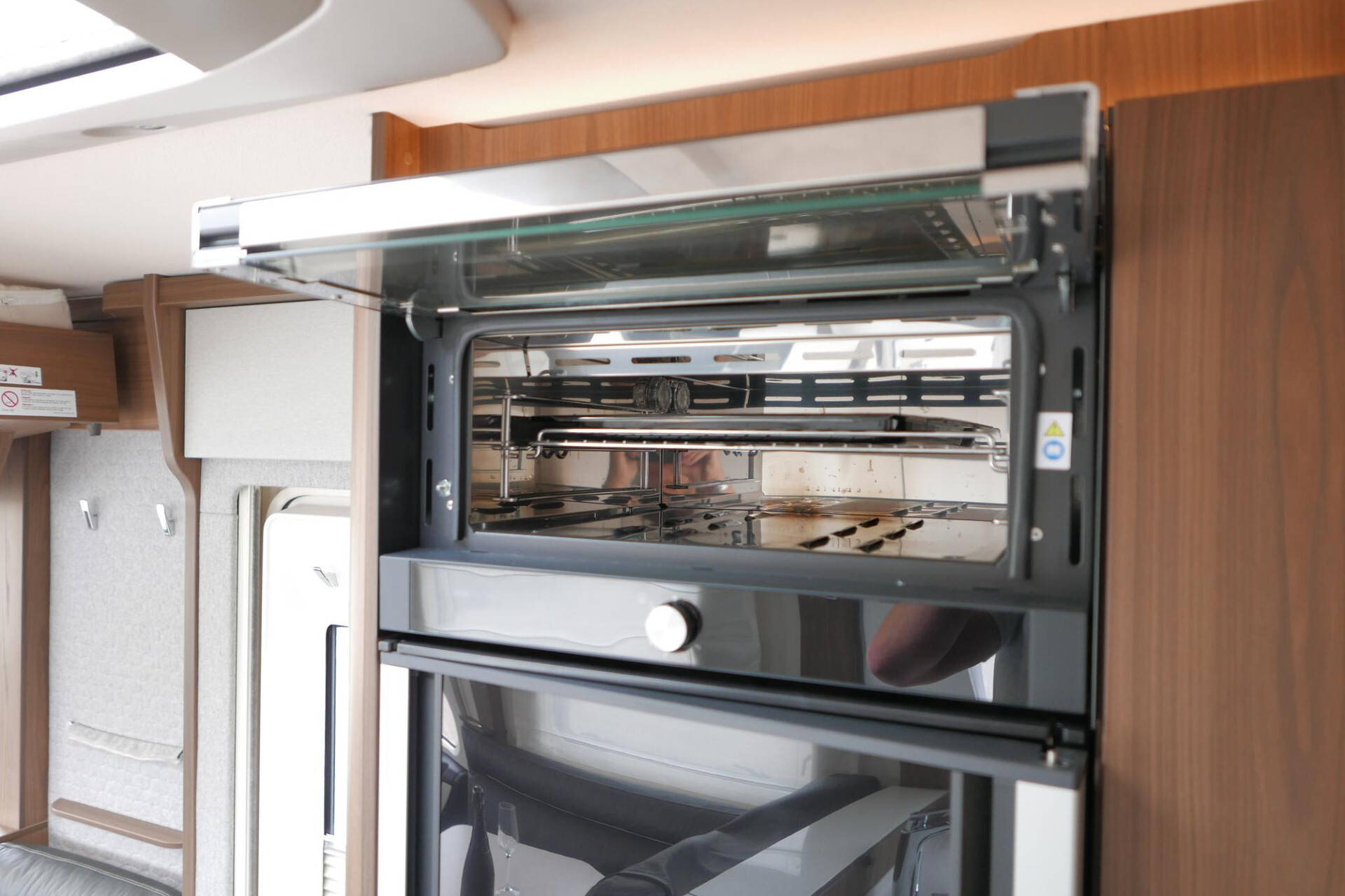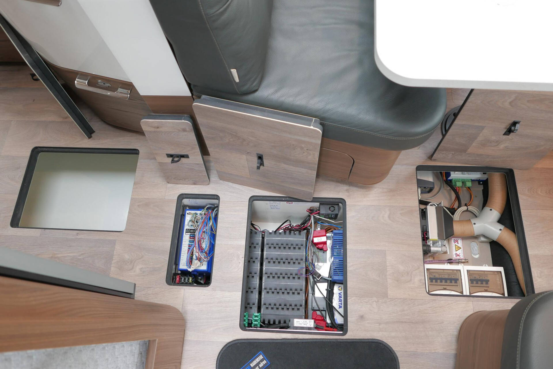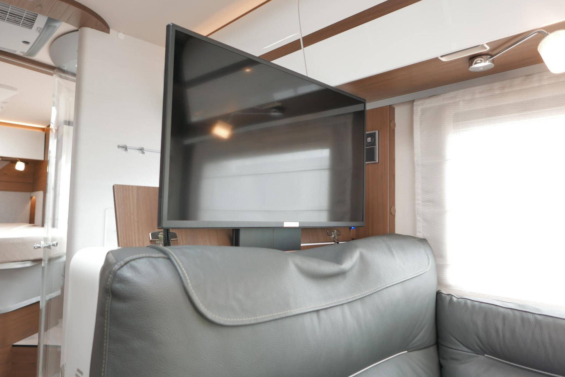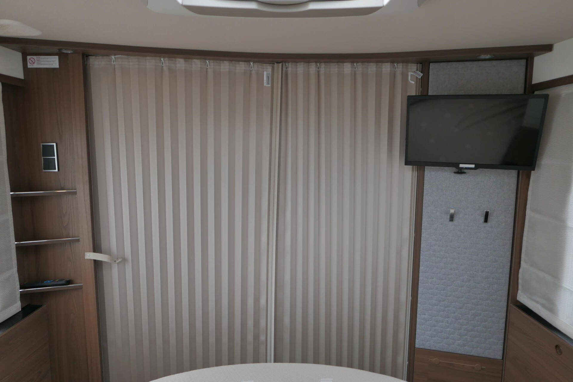 Door de voorstoelen te draaien ontstaat een royale zithoek met L-zit met een 360° draaibare tafel. Het Velvet Ash meubeldecor in combinatie met de luxe leder Grigio bekleding zorgen voor een chique uitstraling. Door het AL-KO chassis beschikt deze camper over een vlakke vloer met in de mee verwarmde dubbele bodem extra opbergruimte die zowel van binnenuit als van buitenaf te bereiken is. Ook de 180 liter schoon- 150 liter vuilwatertank bevinden zich in de dubbele bodem. Natuurlijk zijn alle ramen de toegangsdeur voorzien van horren en plisséverduistering.