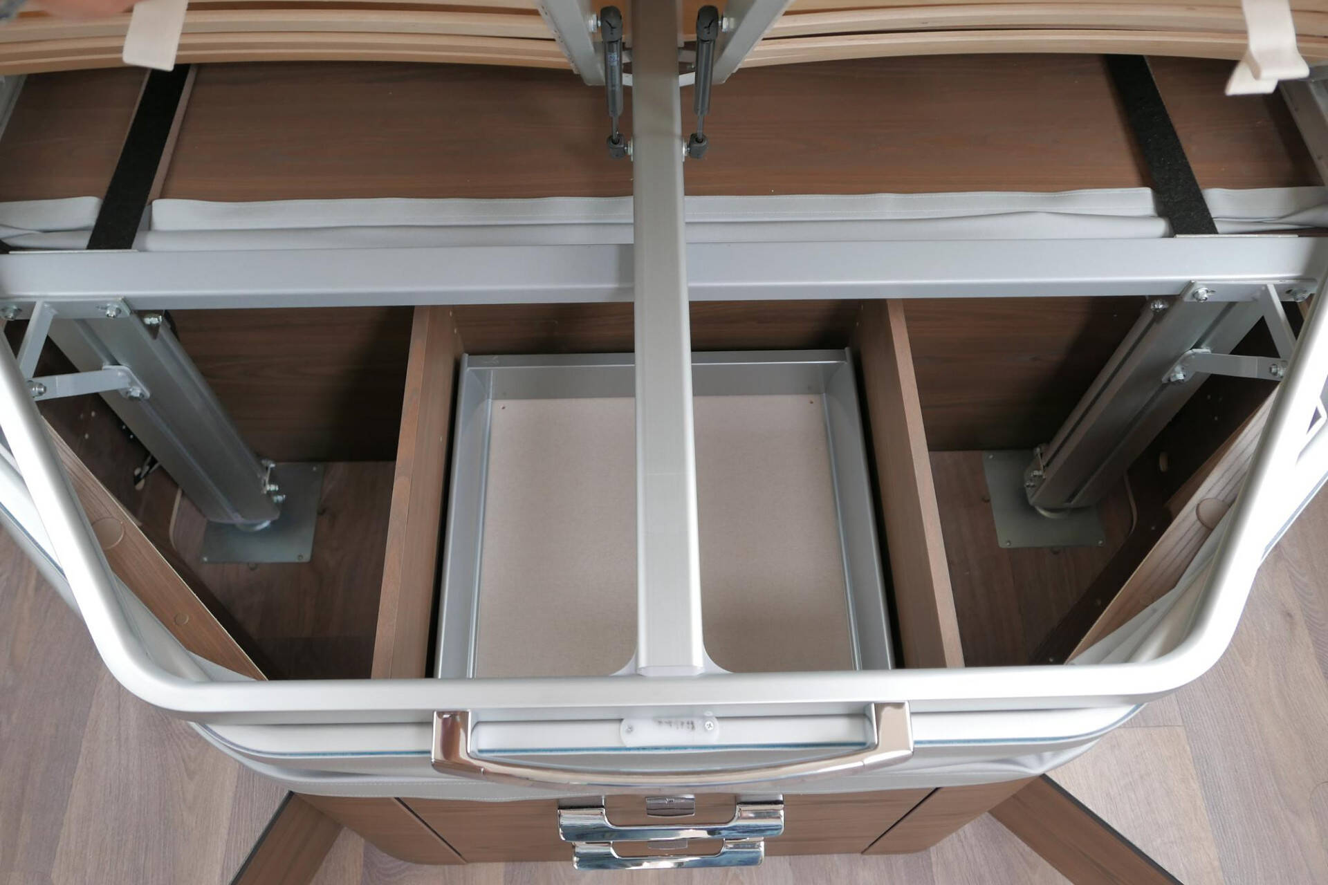 • Boven de zithoek een 2 persoons hefbed met comfortschotelsysteem