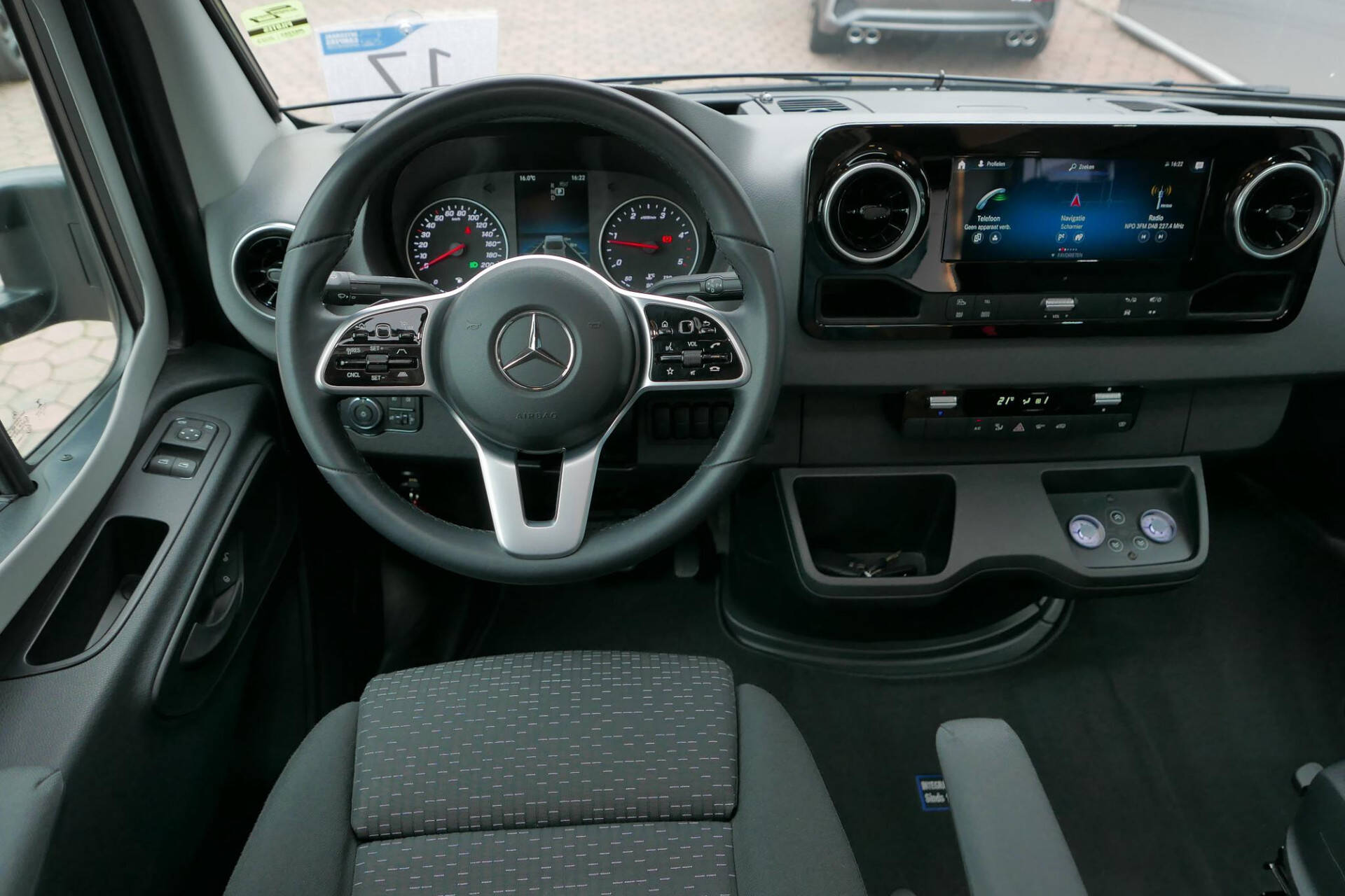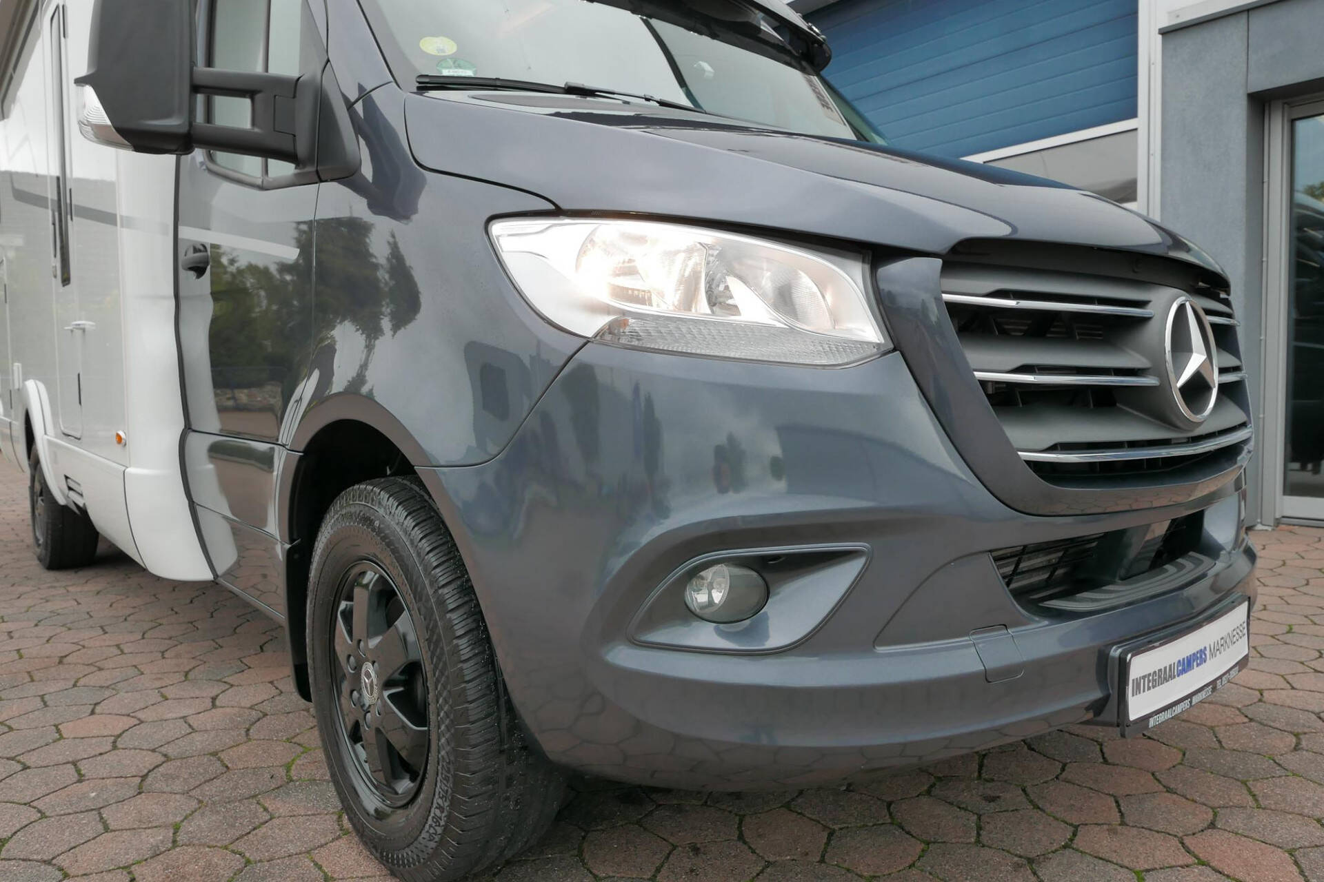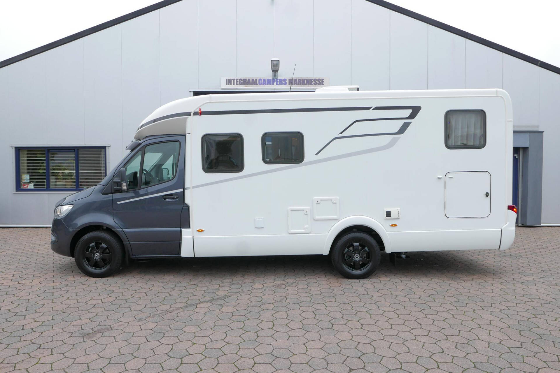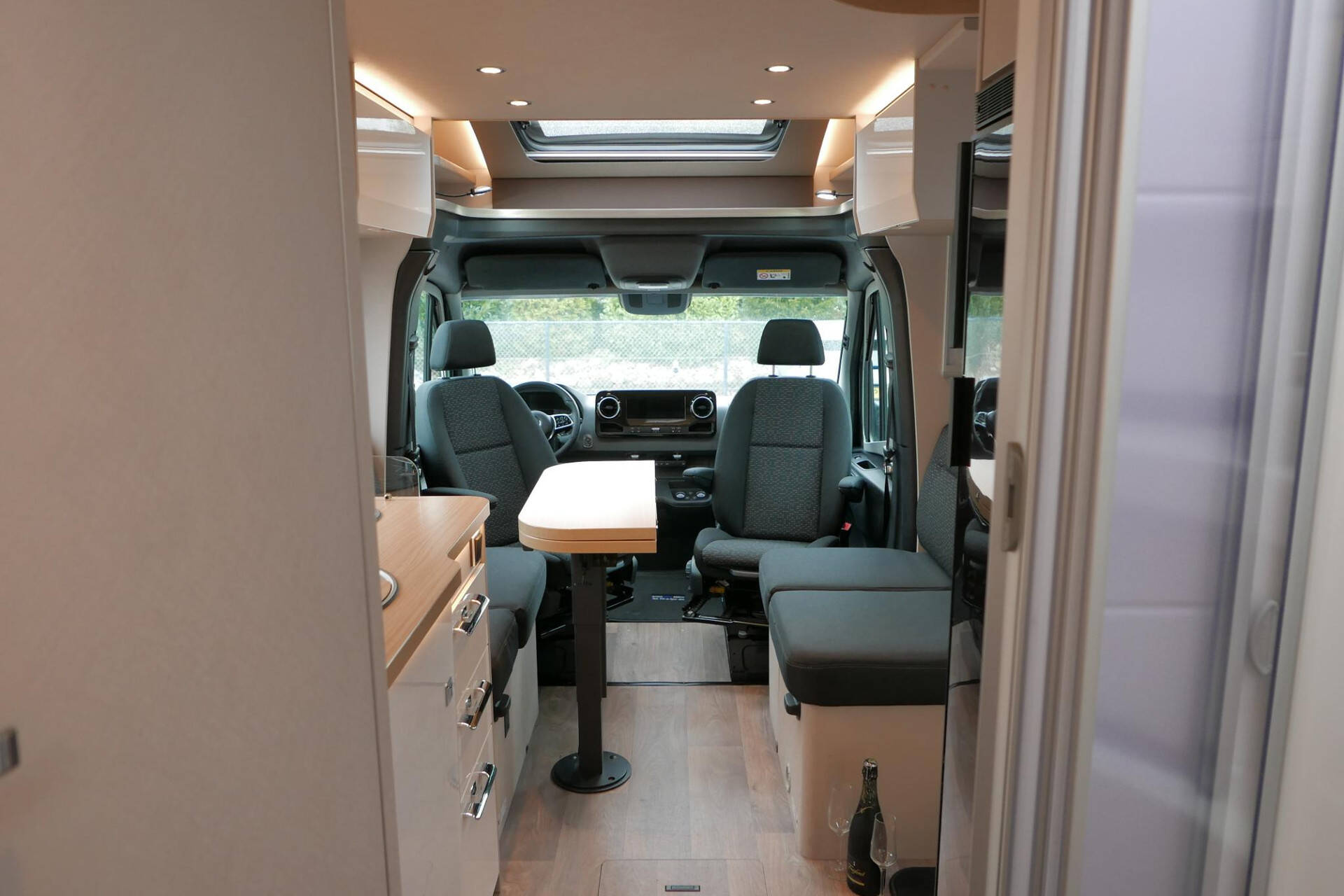 De cabine van deze half-integraalcamper is makkelijk toegankelijk via de bestuurders- en de passagiersdeur. De cabine is uitgerust met het Mercedes-Benz 10,25 inch MBUX multimedia systeem en 2 luxe comfortstoelen die volledig verstelbaar en draaibaar zijn. Verder beschikt deze camper over: