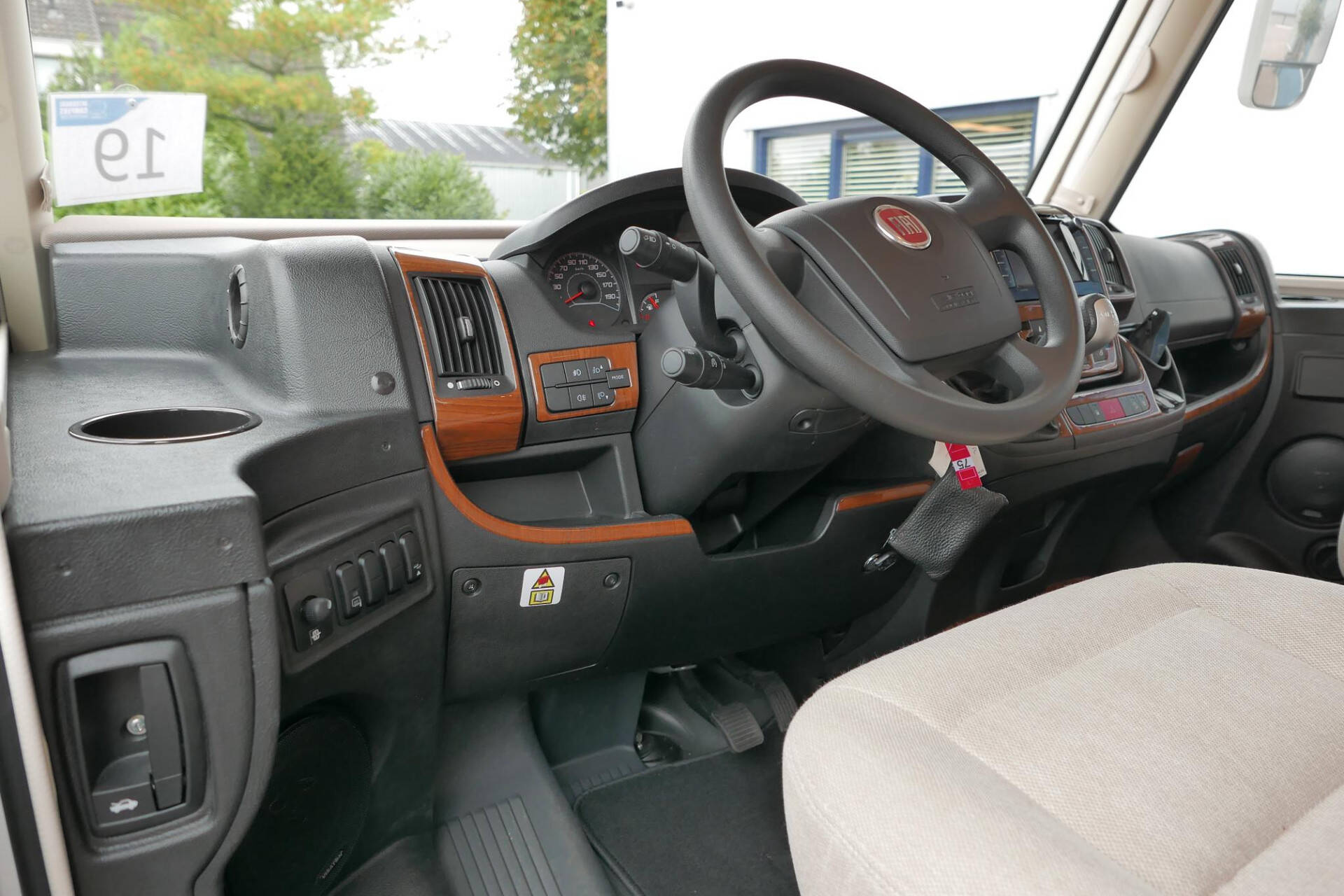 In de cabine van deze integraalcamper valt meteen het fantastische panorama uitzicht op. Om volop te genieten van de omgeving om u heen, maar ook voor een goed overzicht op het verkeer tijdens het rijden. De cockpit is voorzien van onder andere cruise control en automatische airco. De 2 luxe Aguti ergoflex pilotenstoelen zijn verstel- en draaibaar.